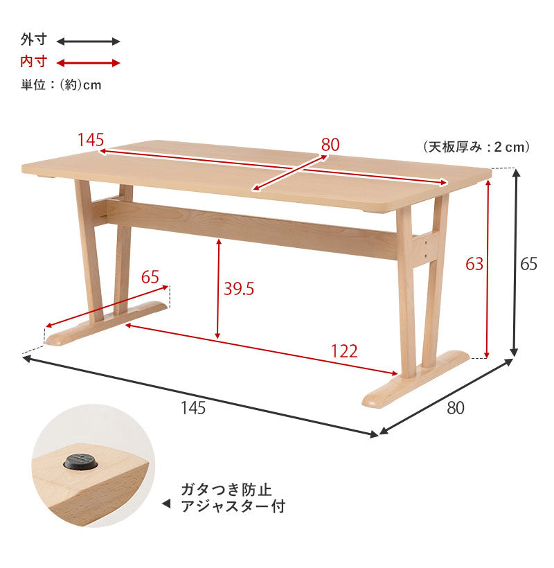 主材:天然木(ビーチ材)、天板:天然木化粧繊維板(ビーチ突板)、張地:ポリエステル、クッション材:ウレタンフォーム