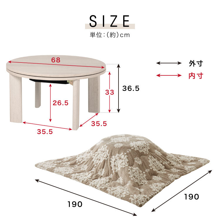 ※こたつテーブルのホワイトは、グレーの混ざった色味のため、混じりけのない真っ白ではありません。
