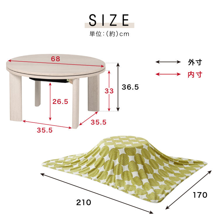 カジュアルこたつ 布団付き 2点セット 円形テーブル+掛け布団 幅68 ノルディック柄 北欧柄 折れ脚 炬燵 コタツ スノウ かわいい 可愛い センターテーブル ローテーブル おしゃれ(代引不可)