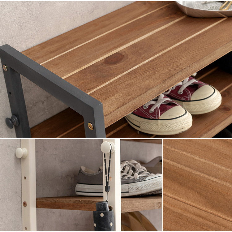 サンダルからブーツまで、靴の高さに合わせて棚の高さを組み換えできるシューズラック。靴が見やすく取り出しやすいオープンタイプ。