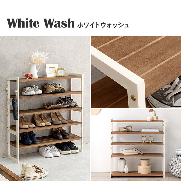 天然木 シューズラック 5段 幅85cm サンダルからブーツまで 可動棚 オープンラック 棚 収納 靴箱 シューズボックス 玄関収納 おしゃれ(代引不可)