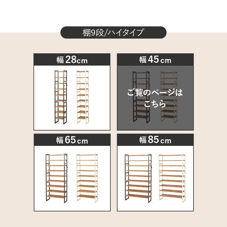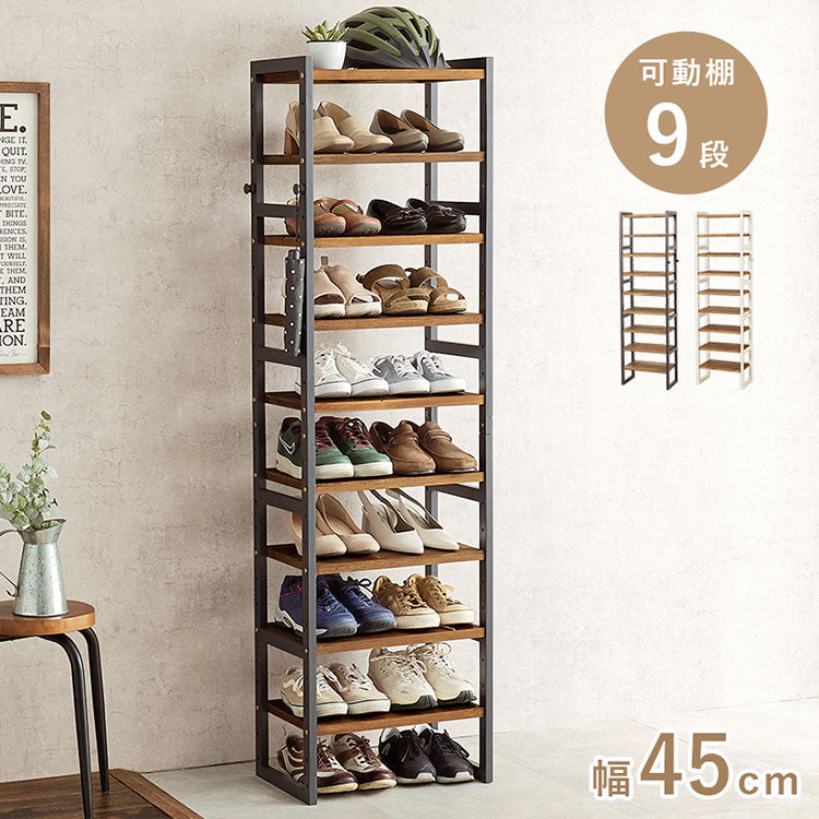 天然木 シューズラック 9段 幅45cm サンダルからブーツまで 可動棚 オープンラック 棚 収納 靴箱 シューズボックス 玄関収納 おしゃれ(代引不可)