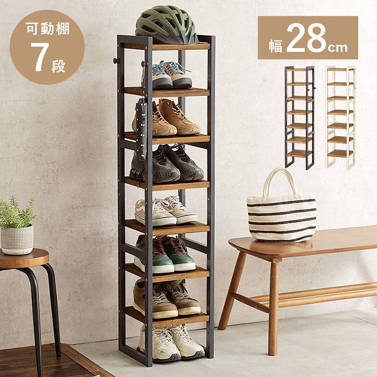 天然木 シューズラック 7段 幅28cm サンダルからブーツまで 可動棚 オープンラック 棚 収納 靴箱 シューズボックス 玄関収納 スリム 隙間収納 すき間収納 おしゃれ(代引不可)