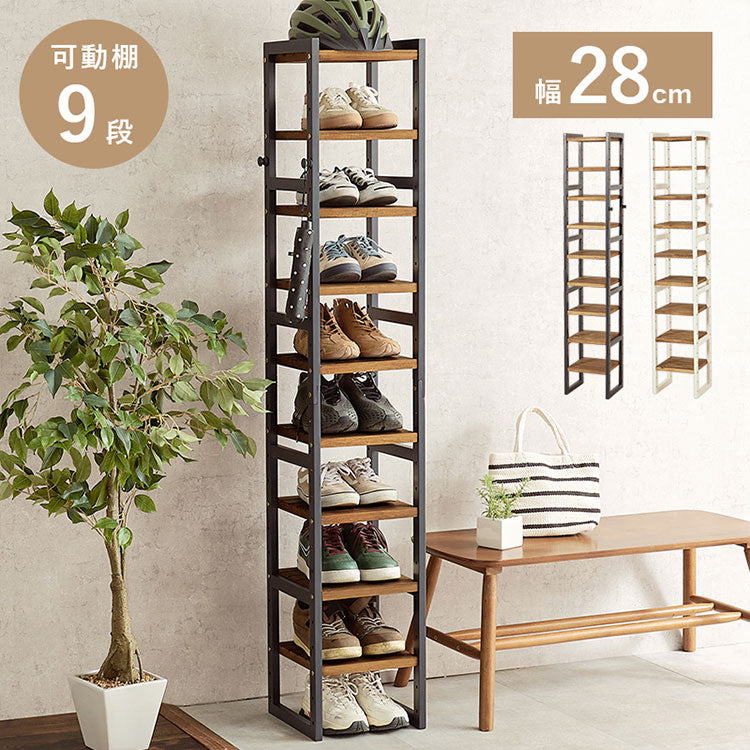 天然木 シューズラック 9段 幅28cm サンダルからブーツまで 可動棚 オープンラック 棚 収納 靴箱 シューズボックス 玄関収納 スリム 隙間収納 すき間収納 おしゃれ(代引不可)