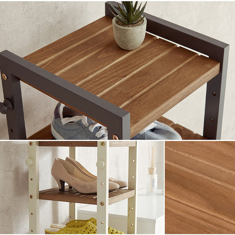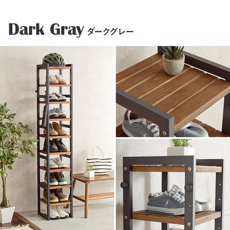 サンダルからブーツまで、靴の高さに合わせて棚の高さを組み換えできるシューズラック。靴が見やすく取り出しやすいオープンタイプ。