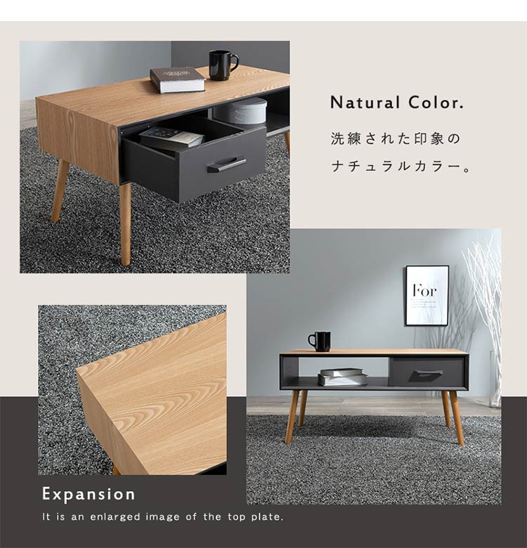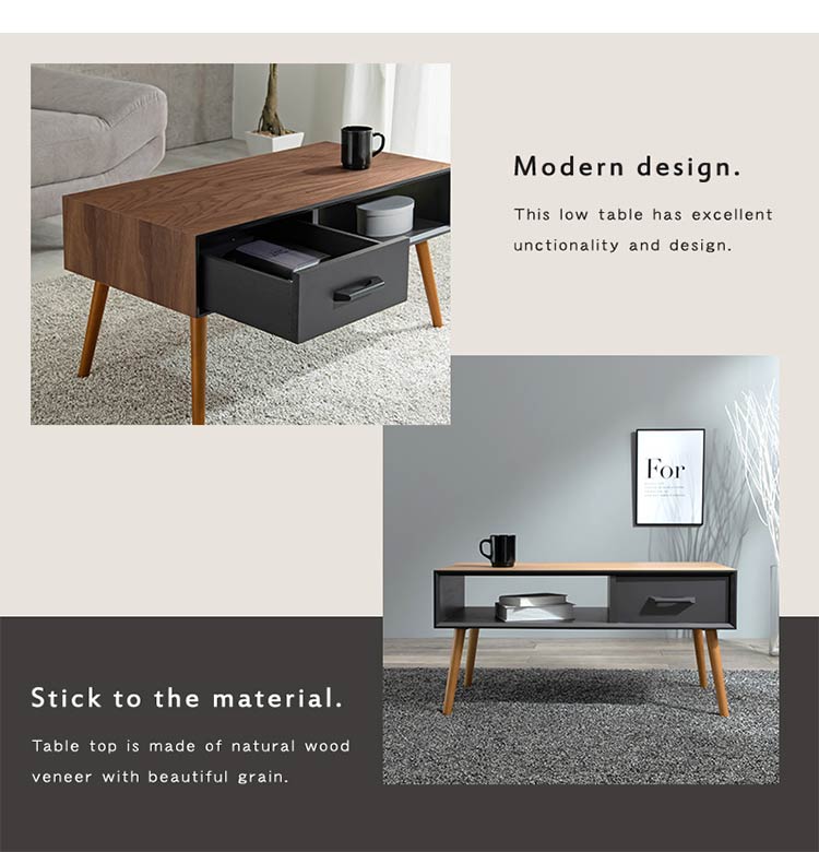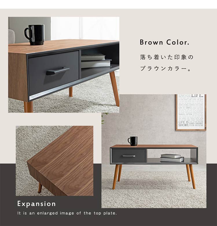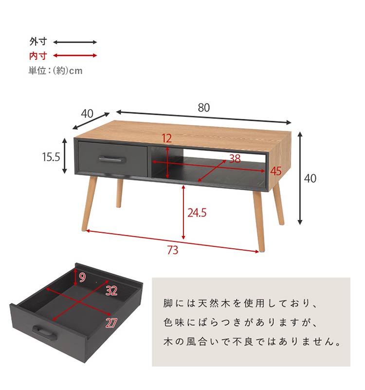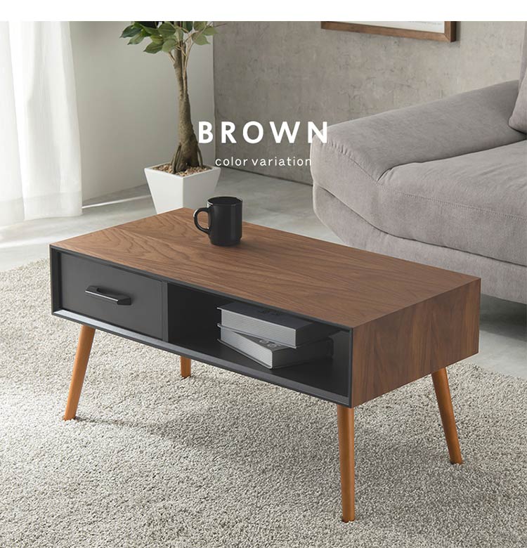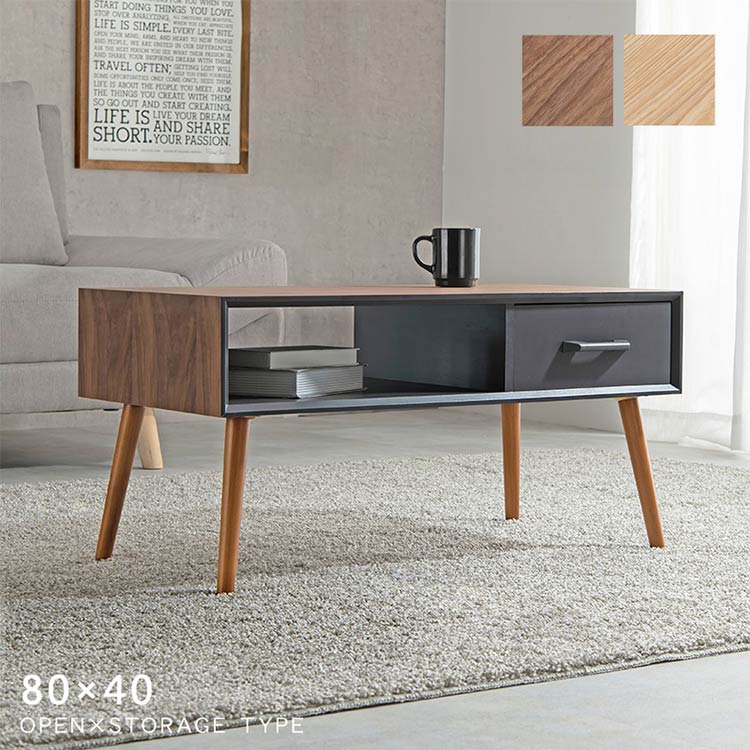 センターテーブル 天然木 引出し収納 幅80 シンプル モダン ダークトーン おしゃれ かっこいい 北欧 リビング 一人暮らし 新生活 ローテーブル 机 韓国インテリア(代引不可)