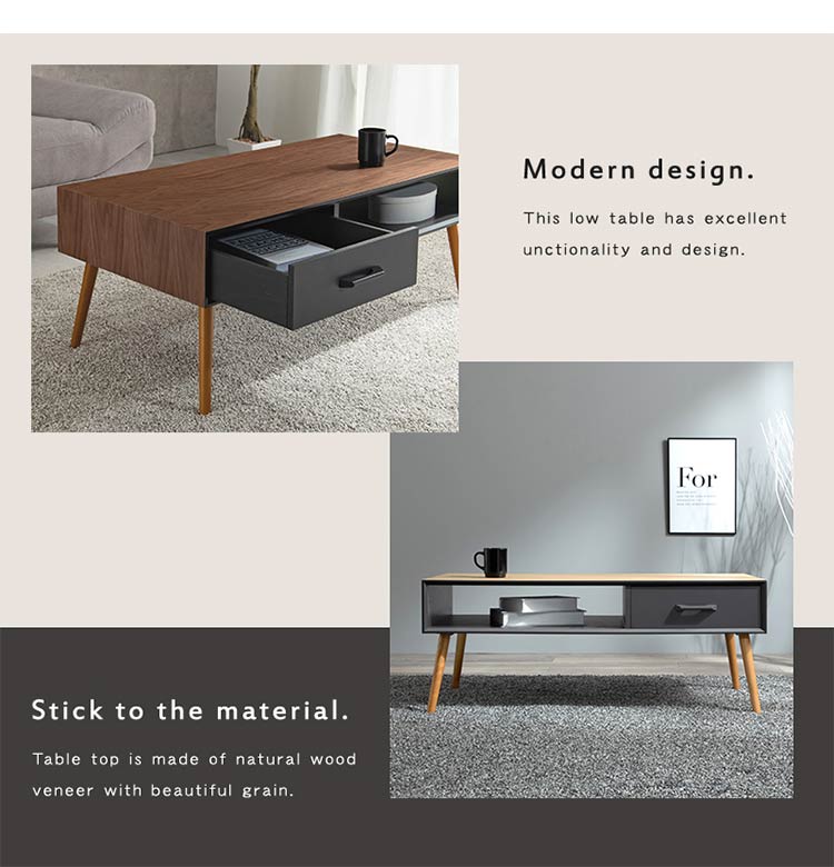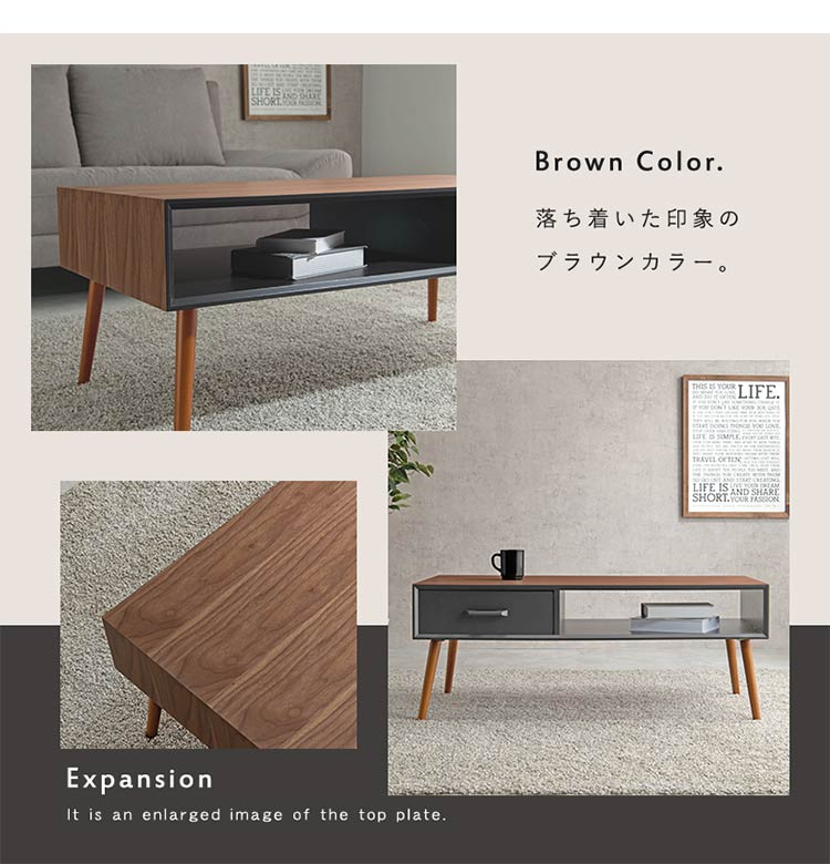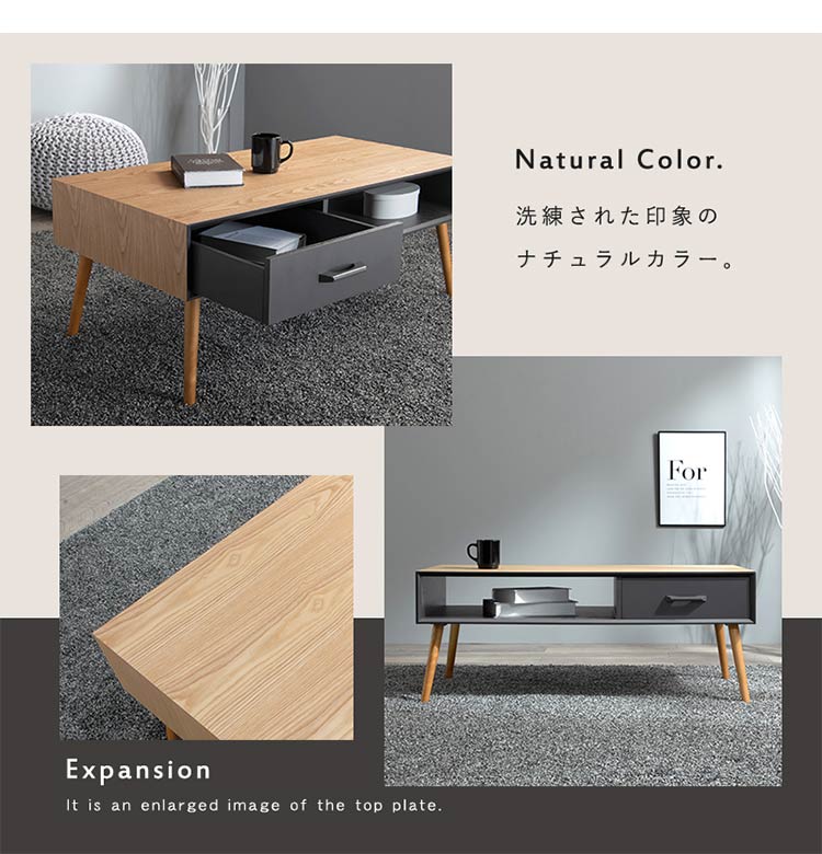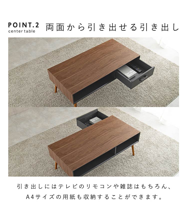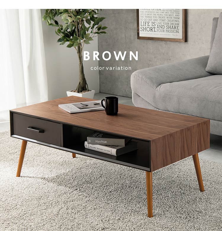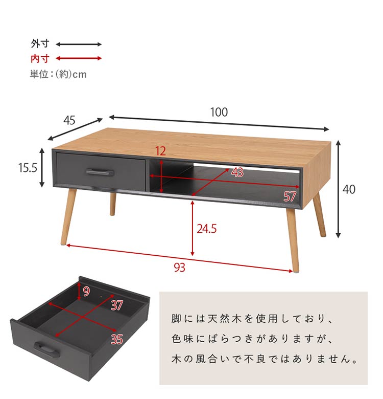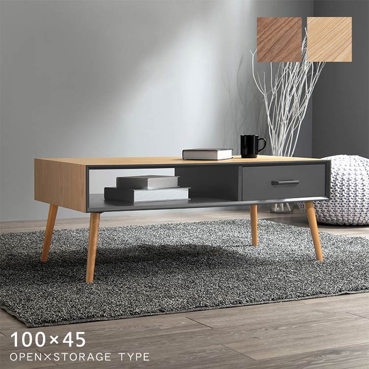 センターテーブル 天然木 引出し収納 幅100 シンプル モダン ダークトーン おしゃれ かっこいい 北欧 リビング 一人暮らし 新生活 ローテーブル 机 韓国インテリア(代引不可)