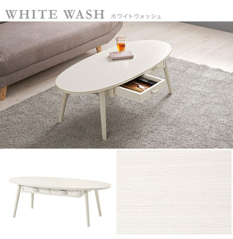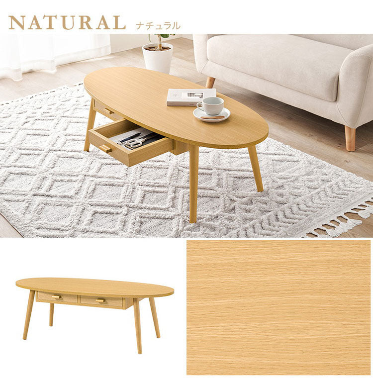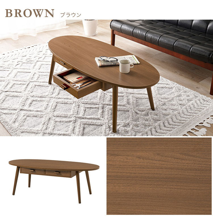 センターテーブル 引き出し付き 収納付き 110×48cm 楕円 オーバル ローテーブル 机 ソファテーブル コーヒーテーブル 北欧 シンプル モダン おしゃれ(代引不可)