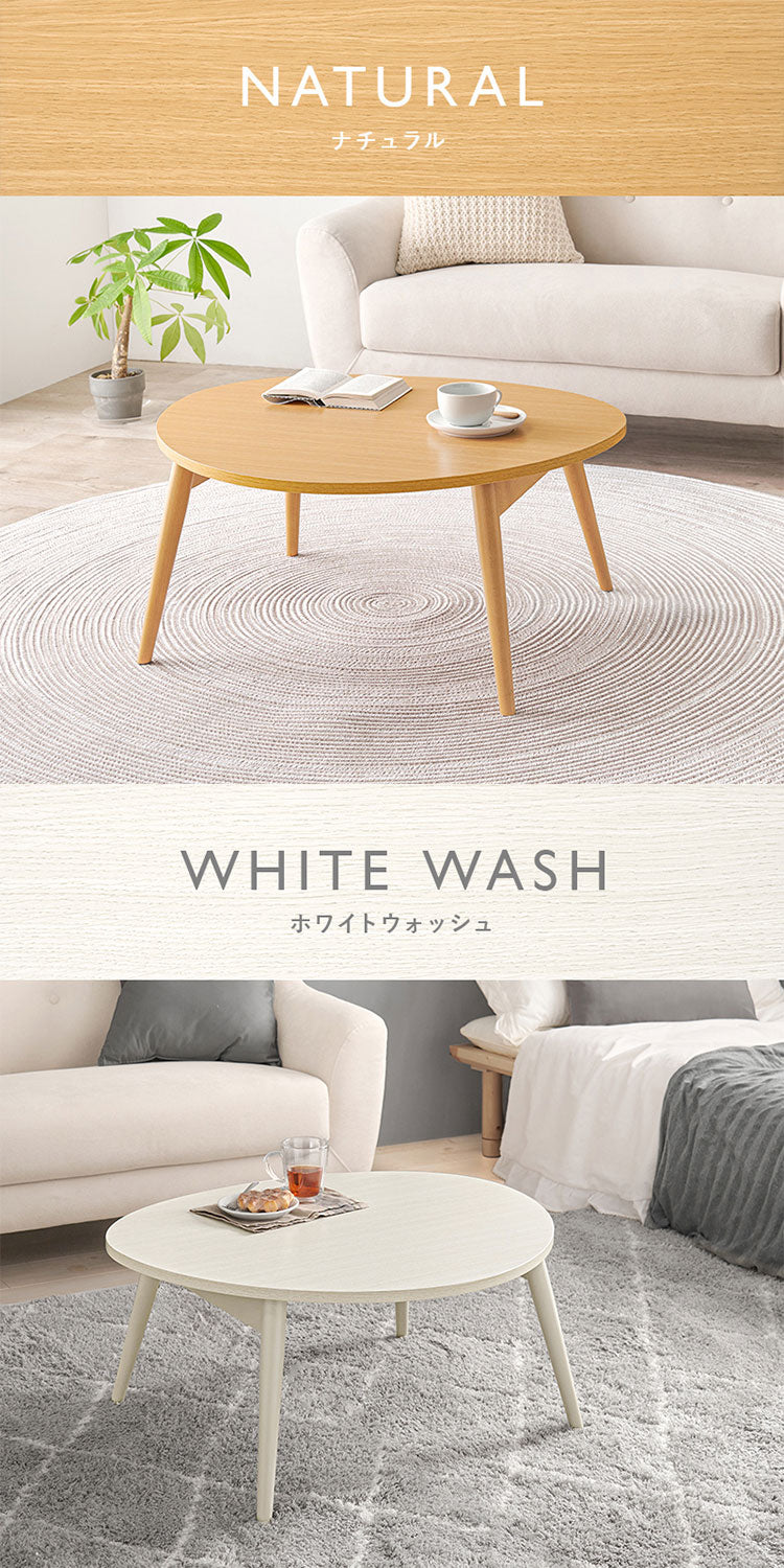 ほどよく広いおにぎり型のテーブルはちょっとした作業やセンターテーブルにぴったり。折れ脚式なので使わないときはコンパクトに収納も可能。
