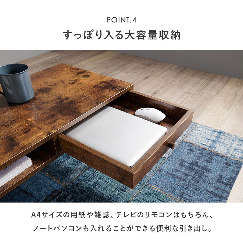 センターテーブル 80×40 ヴィンテージ調 デザイン収納テーブル 引出し収納 大容量 収納 引き出し ローテーブル リビングテーブル シンプル モダン 北欧 おしゃれ(代引不可)
