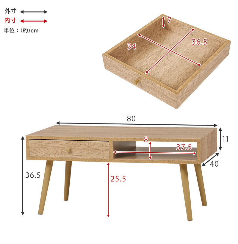 (約)幅80×奥行40×高さ36.5cm