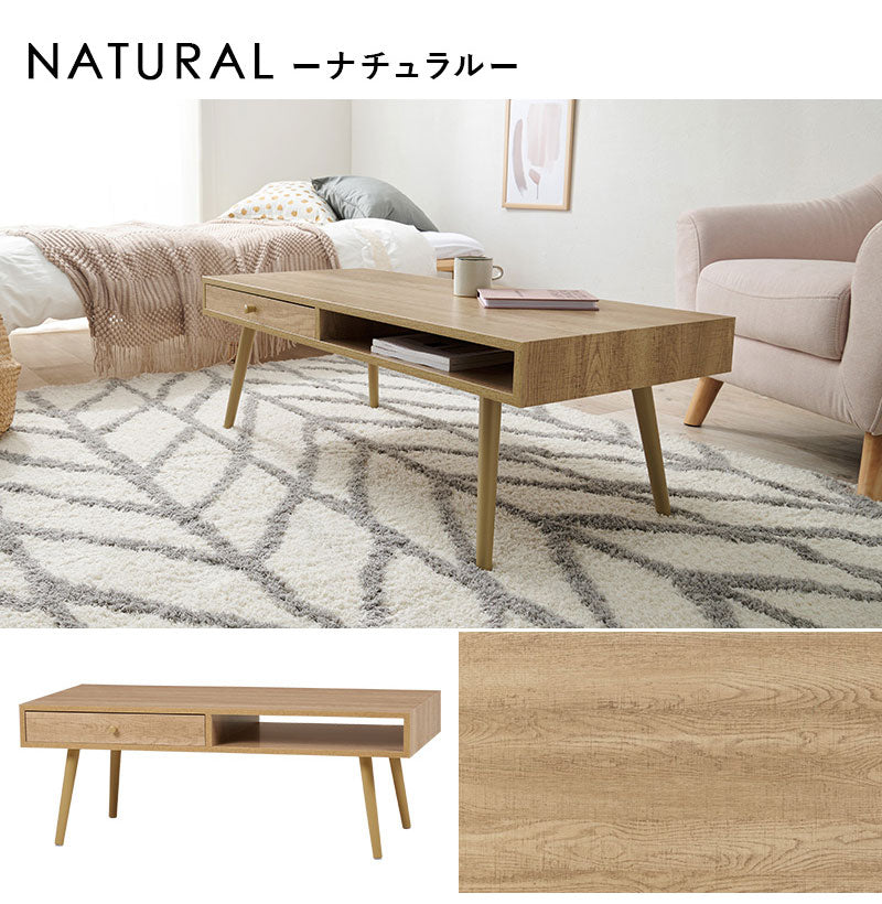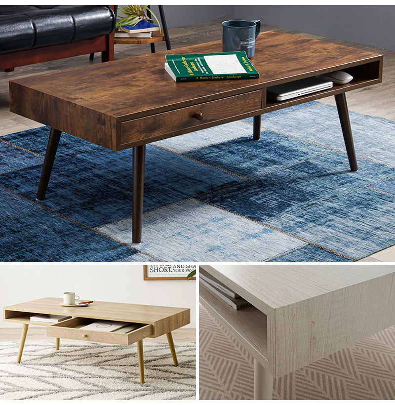 シンプルなデザインで、前後両側から引き出せる引出しが便利なセンターテーブル
