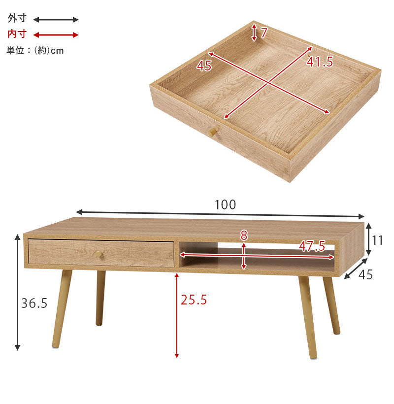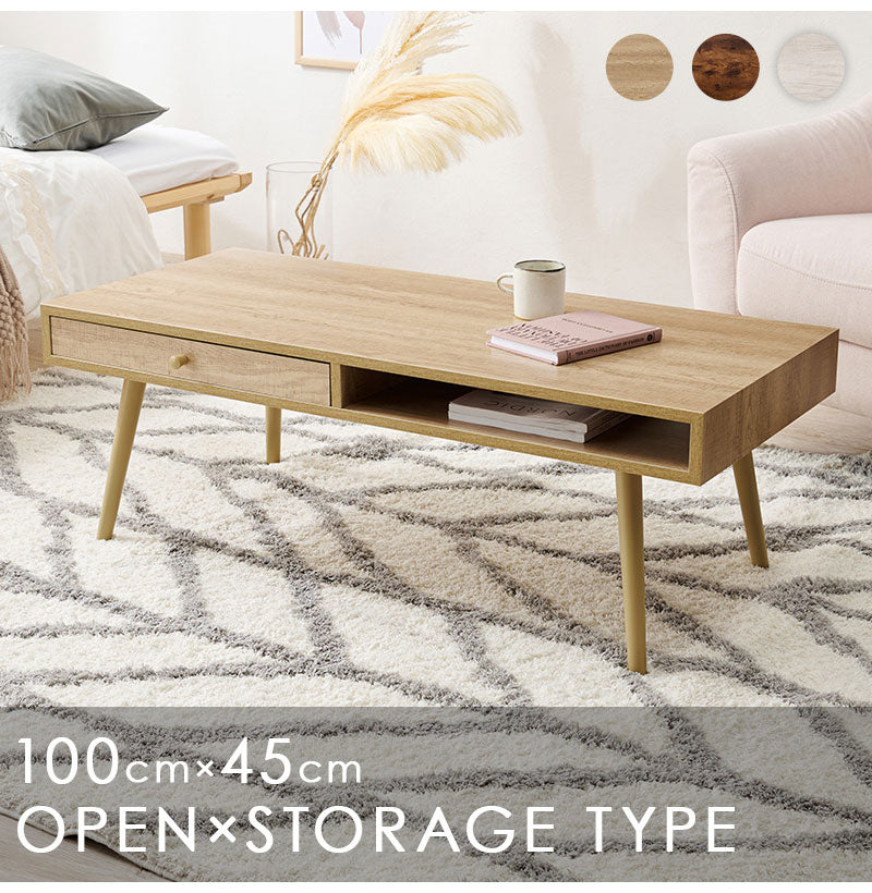 センターテーブル 100×45 ヴィンテージ調 デザイン収納テーブル 引出し収納 大容量 収納 引き出し ローテーブル リビングテーブル シンプル モダン 北欧 おしゃれ(代引不可)