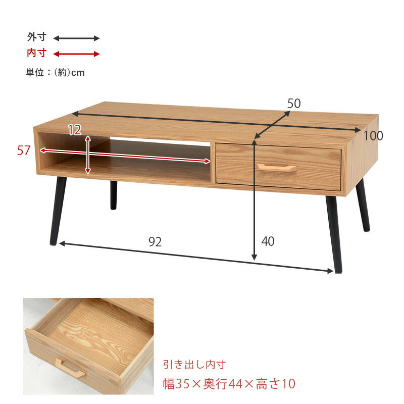 テーブル センターテーブル 幅100cm モダン 北欧 韓国インテリア おしゃれ 引出し 付き 天然木 タモ材 ウォールナット UV塗装 収納 コンパクト 引き出し ローテーブル リビングテーブル 一人暮らし 新生活 (代引不可)