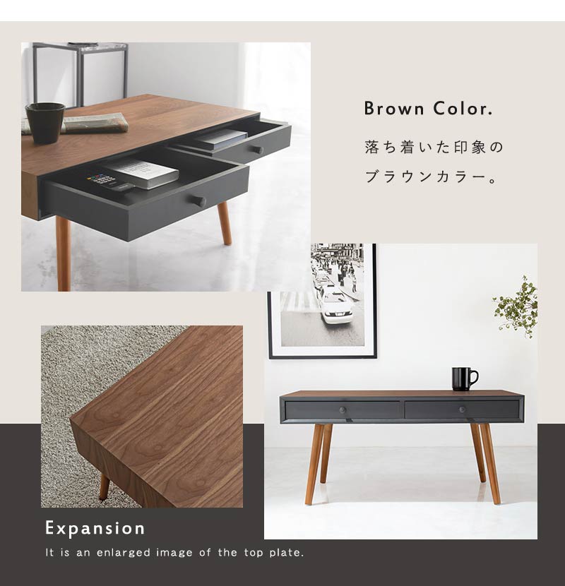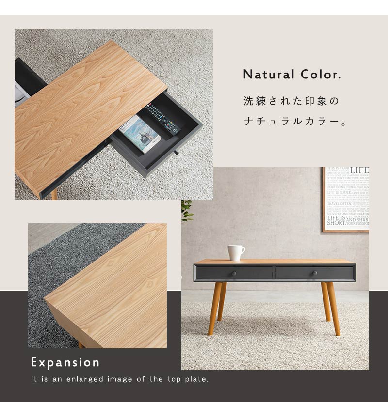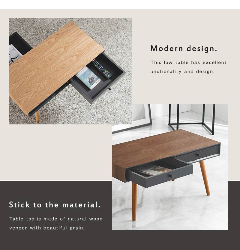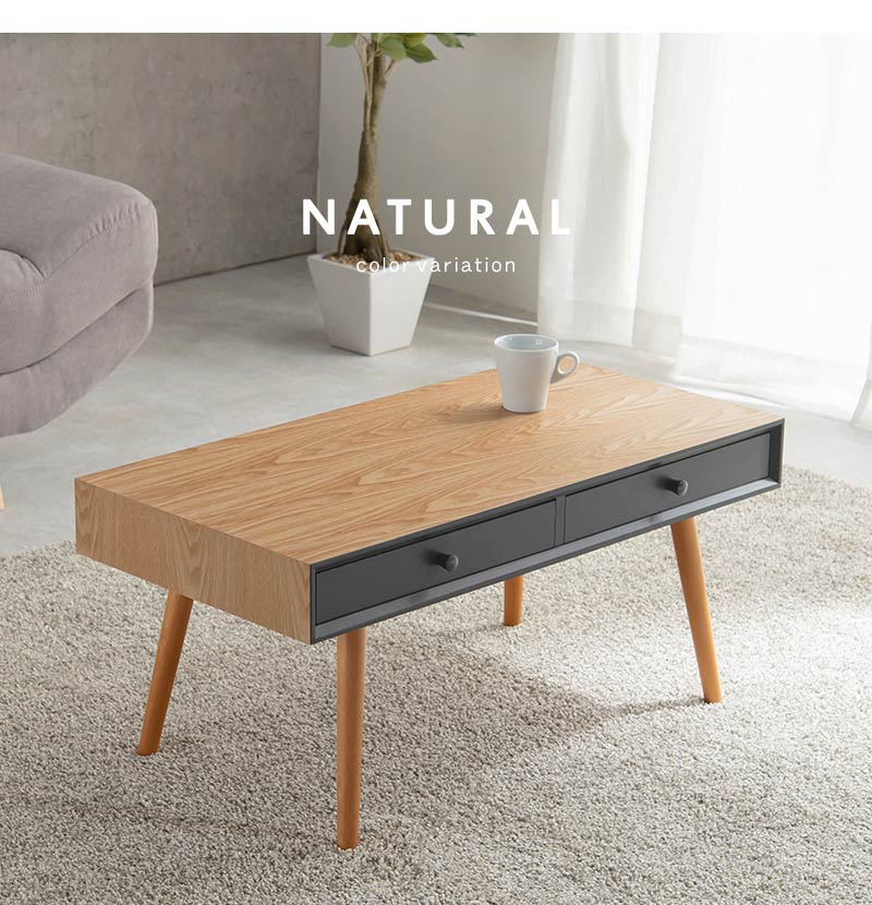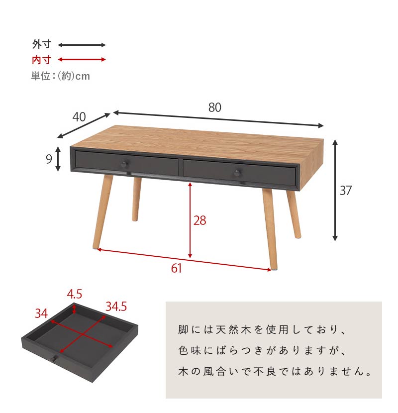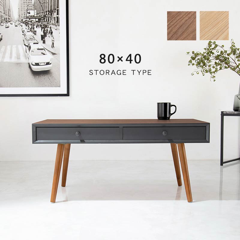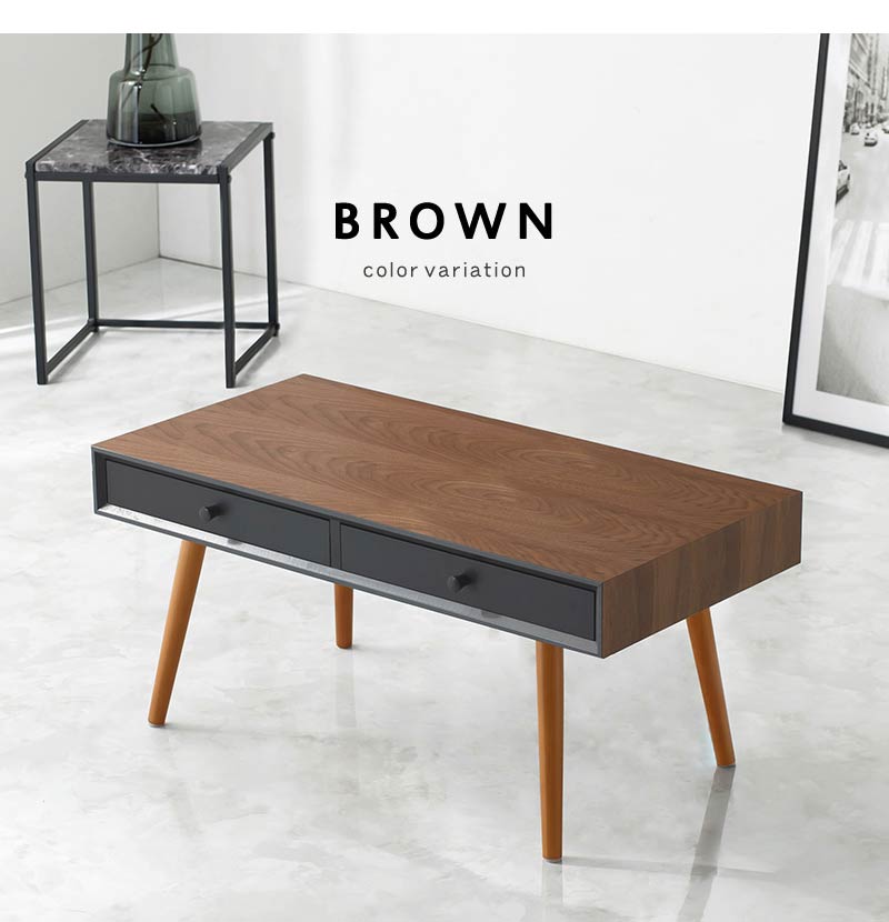センターテーブル 天然木 引出し2杯 収納 幅80 シンプル モダン ダークトーン おしゃれ かっこいい 北欧 リビング 一人暮らし 新生活 ローテーブル 机 韓国インテリア(代引不可)