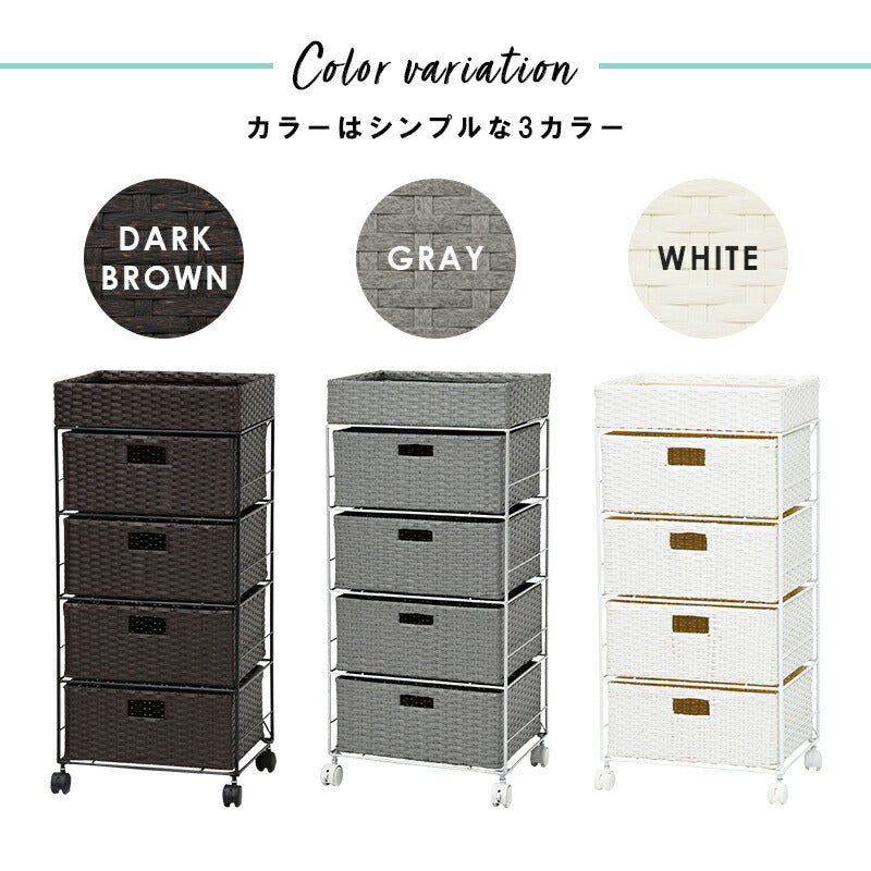 ランドリーラック 4段 幅40.5cm ラタン調 完成品 収納 かご カゴ 籠 棚 すき間収納 スリム ランドリーバスケット キャスター ランドリーチェスト 洗面所 サニタリー 脱衣所(代引不可)