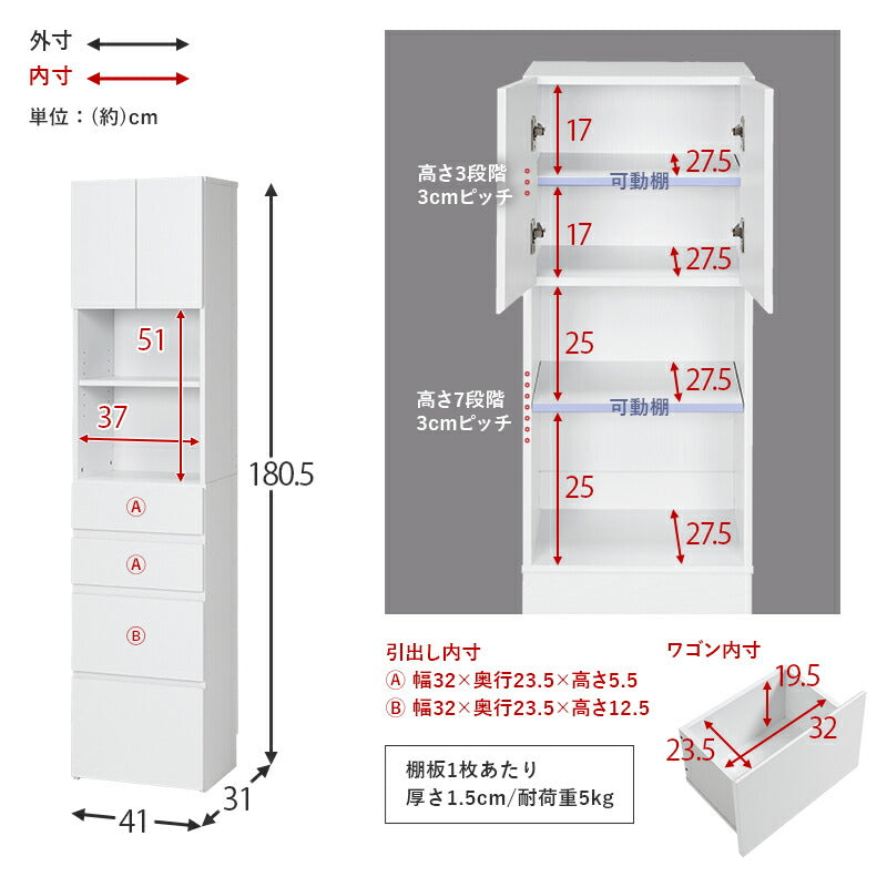すき間収納 隙間収納 幅41cm スリム キッチン収納 ハイタイプ 食器棚 ランドリーラック キッチンストッカー サニタリーチェスト おしゃれ(代引不可)