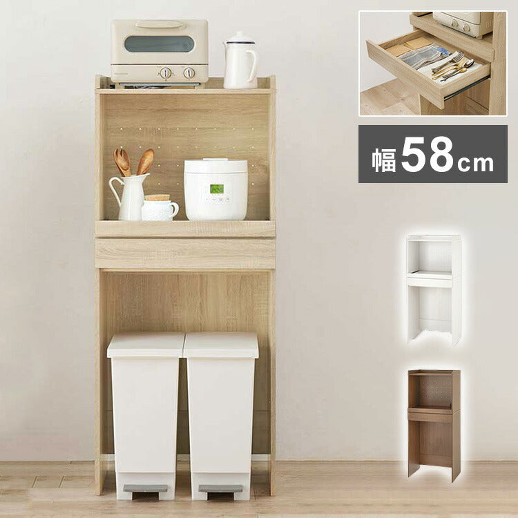 ゴミ箱上ラック 幅58 引出し・スライド棚付き 2段 ごみ箱上ラック 大容量 ゴミ箱 上 ラック レンジ台 レンジラック ゴミ箱ラック ごみ箱ラック キッチン収納 ゴミ箱上収納(代引不可)