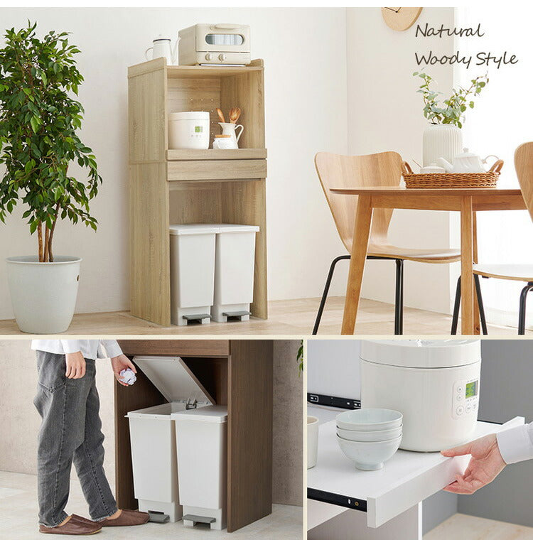 コンパクトなのに多機能収納でキッチンスペースを有効活用可能。引出しやスライド棚付きでキッチン家電も使いやすい。