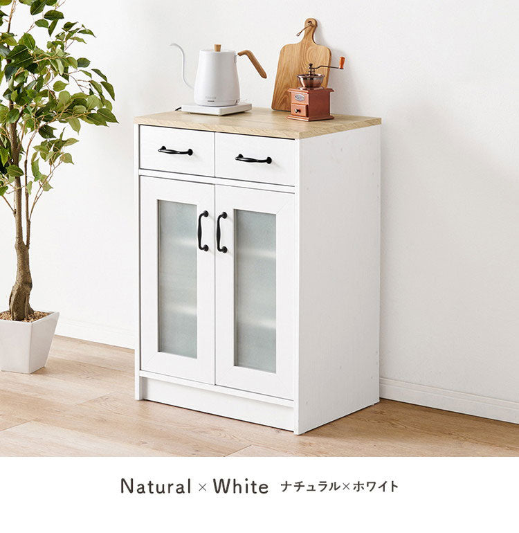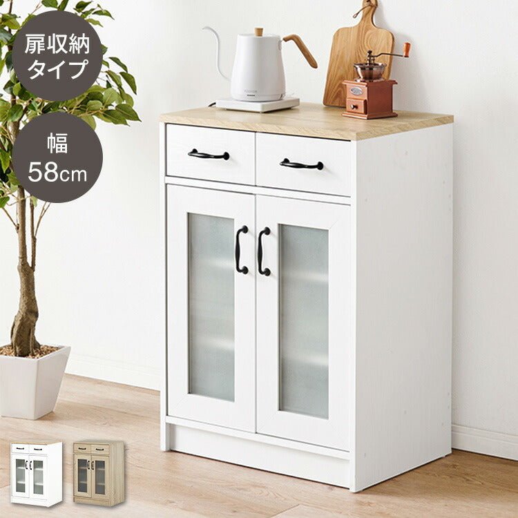 カントリー調 キッチンラック 幅58 扉収納 キャビネット 食器棚 可愛い かわいい 北欧 おしゃれ アンティーク調 キッチン収納 棚 ラック レンジ台 レンジボード キッチンボード(代引不可)