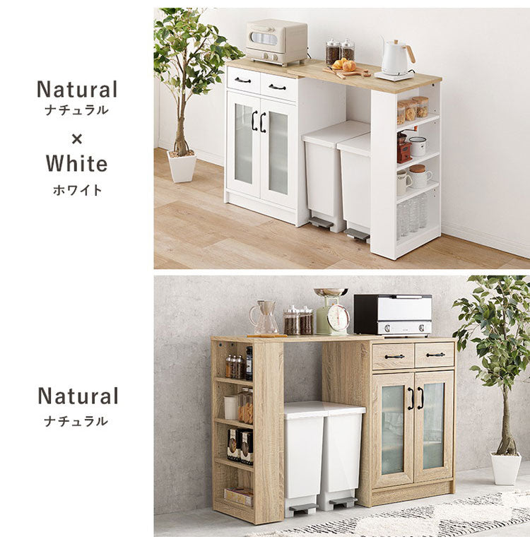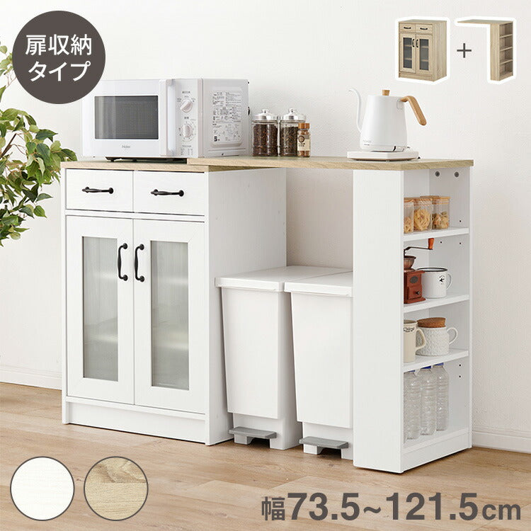 カントリー調 伸縮キッチンカウンター 2点セット 幅73.5~121.5 扉収納 キャビネット 食器棚 可愛い かわいい 北欧 おしゃれ アンティーク調 キッチン収納 棚 ラック ごみ箱上ラック ゴミ箱上ラック(代引不可)