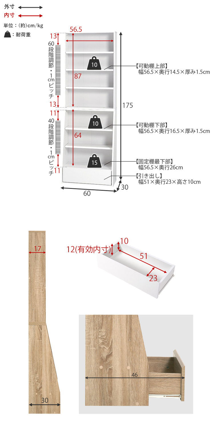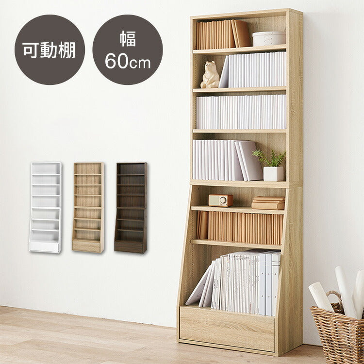 本棚 幅60cm ハイタイプ 棚板 1cmピッチ調節 引き出し付き A4 A5 文庫本 漫画 コミック 雑誌 マガジン 絵本 教科書 ランドセル ラック シェルフ 大容量 おしゃれ(代引不可)