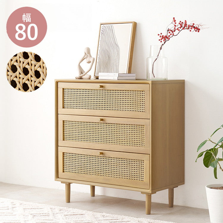 天然ラタン かごめ編み チェスト 幅80 収納棚 リビングチェスト サイドチェスト 棚 収納 サイドボード リビングボード ナチュラル 木製 脚付き 籐 おしゃれ(代引不可)