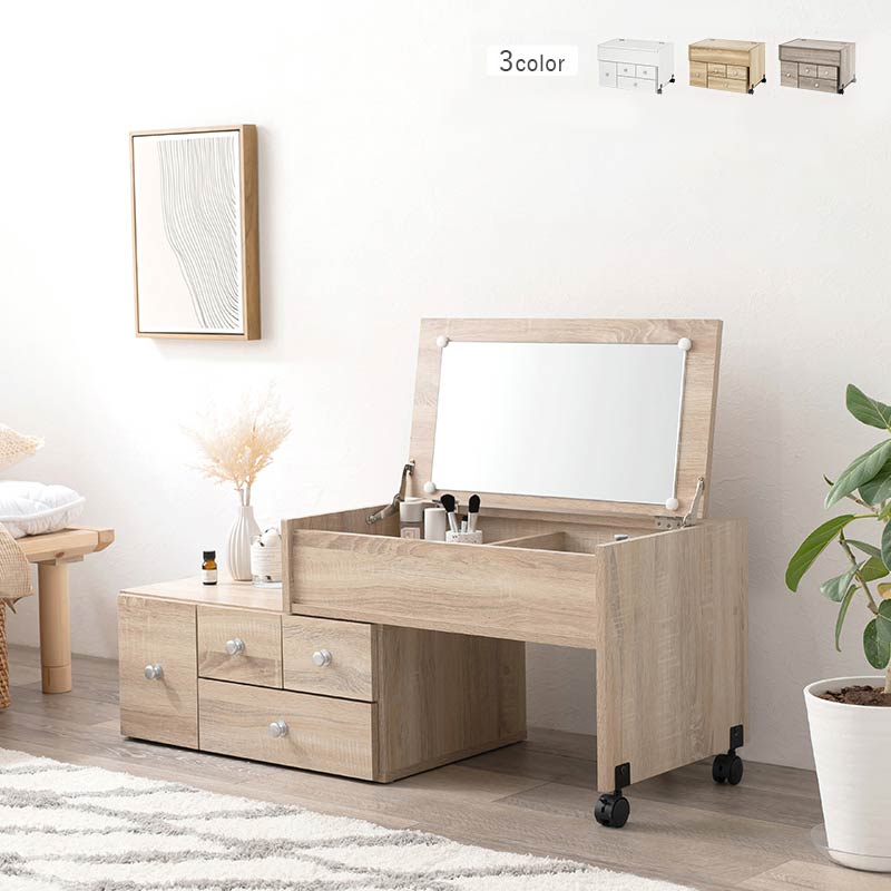ドレッサーとして使わないときは鏡を閉じて、サイドテーブルやデスクとしてもお使いいただけます