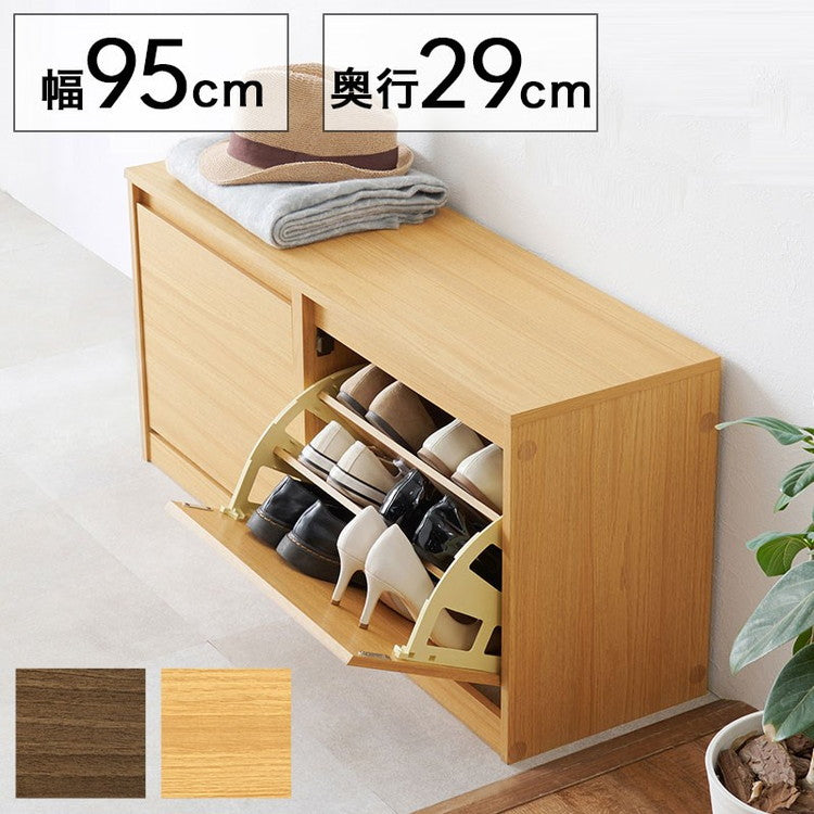 収納付き玄関ベンチ 幅95 ワイド シューズベンチ フラップ式 シューズラック ベンチ 靴箱 玄関収納 省スペース 北欧 ナチュラル おしゃれ(代引不可)