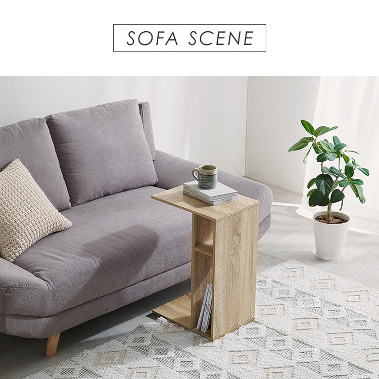 使うシーンに合わせてオープン収納付きのサイドテーブルからローテーブルに置き換え可能な2WAY仕様。木目調のシンプルデザインがお部屋になじみます。