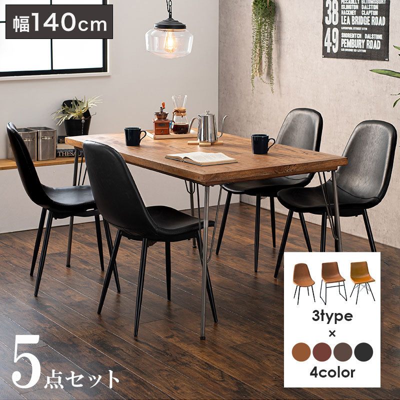 選べるダイニング5点セット 幅140cm 4人掛け ダイニングテーブルセット 4人用 アイアン脚 おしゃれ 無垢 天然木 北欧 ナチュラル ダイニングセット チェア ヴィンテージ調 ダイニングチェア(代引不可)