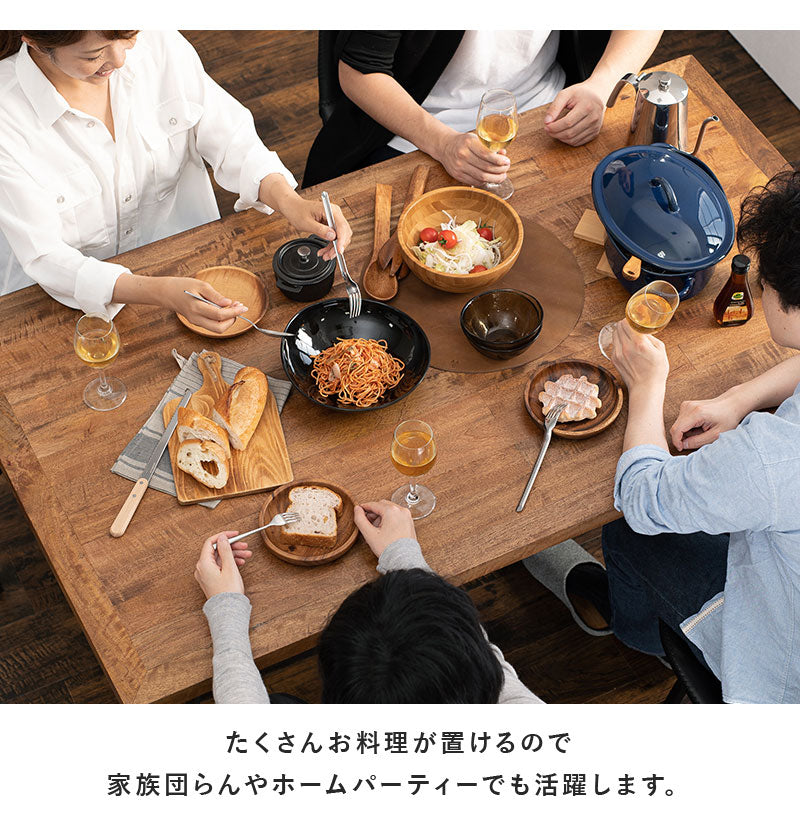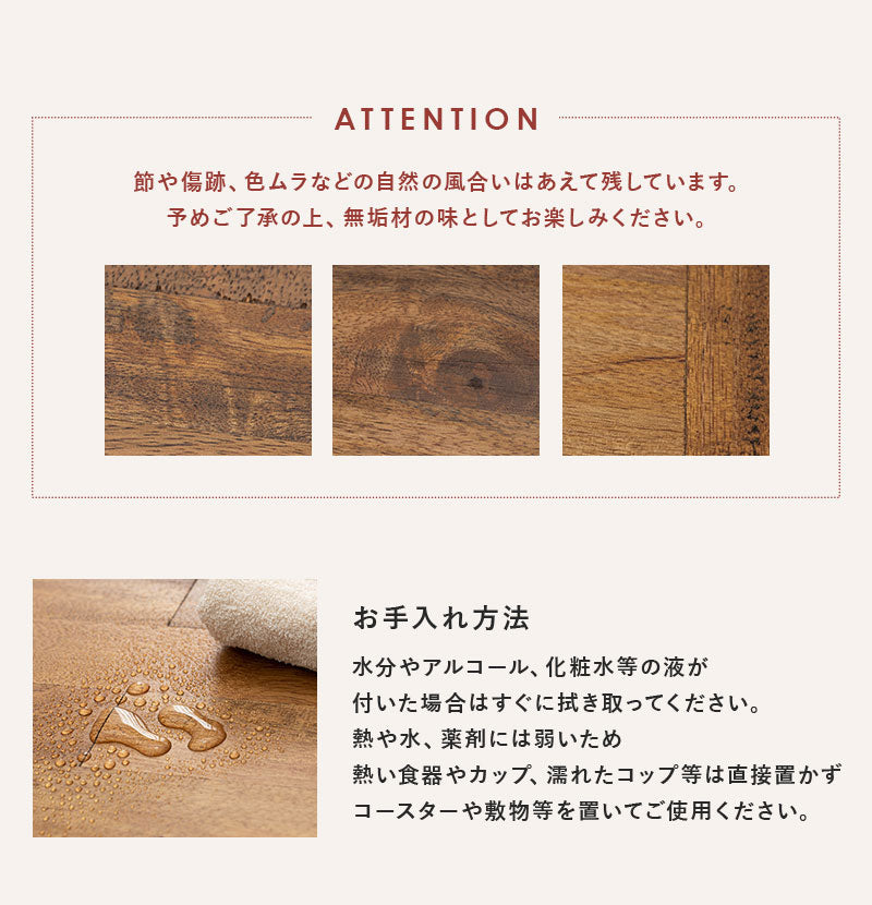 テーブルはアーバンなデザインの鉄脚にマンゴーウッドの天然木を贅沢に使用。使い込むほど木に味わい深い風合いが生まれます。