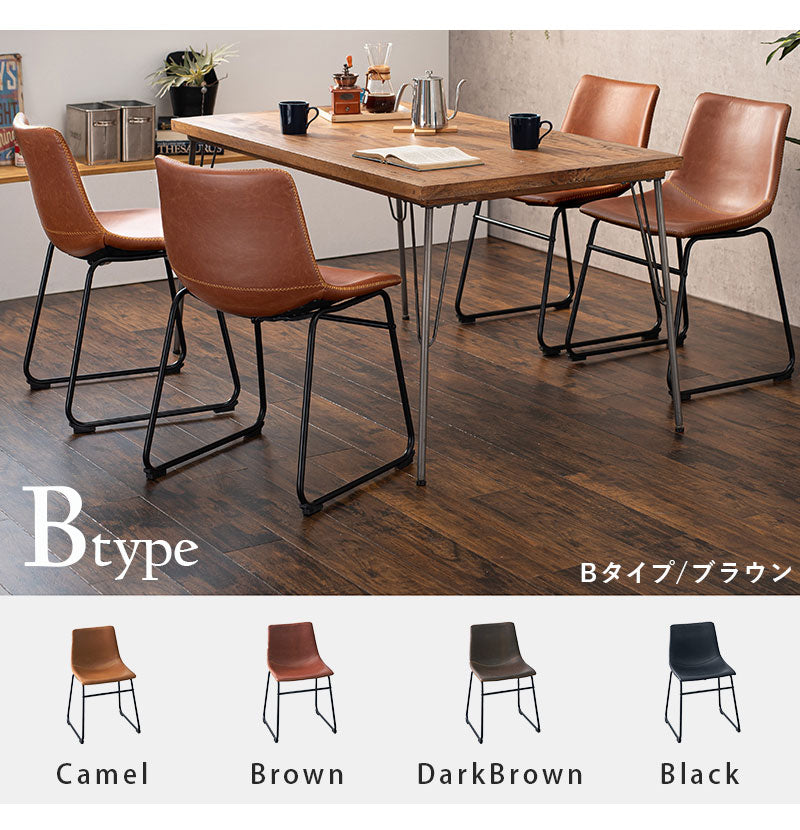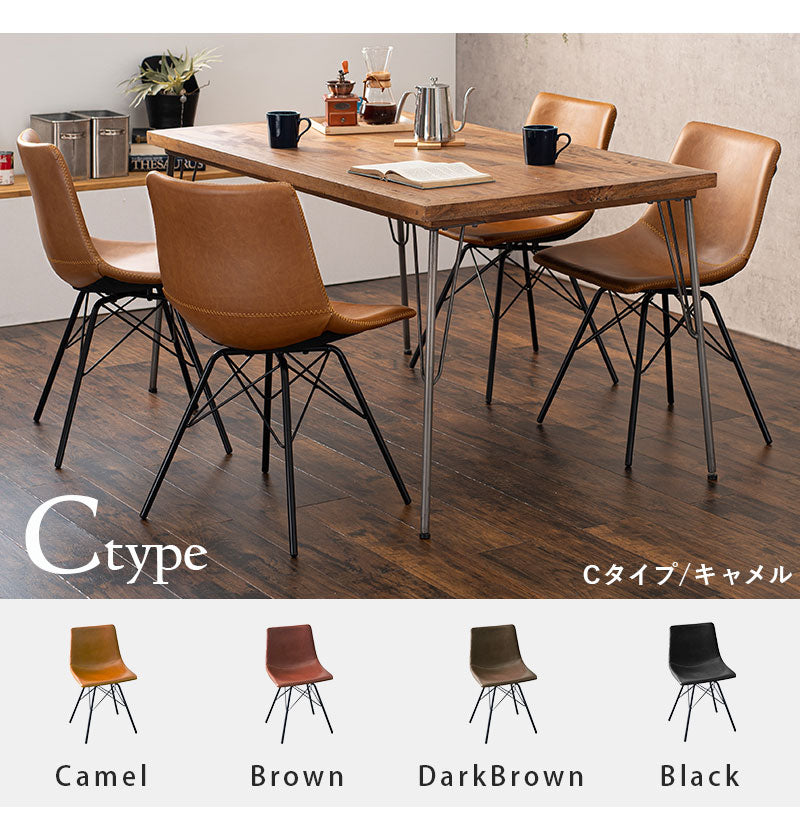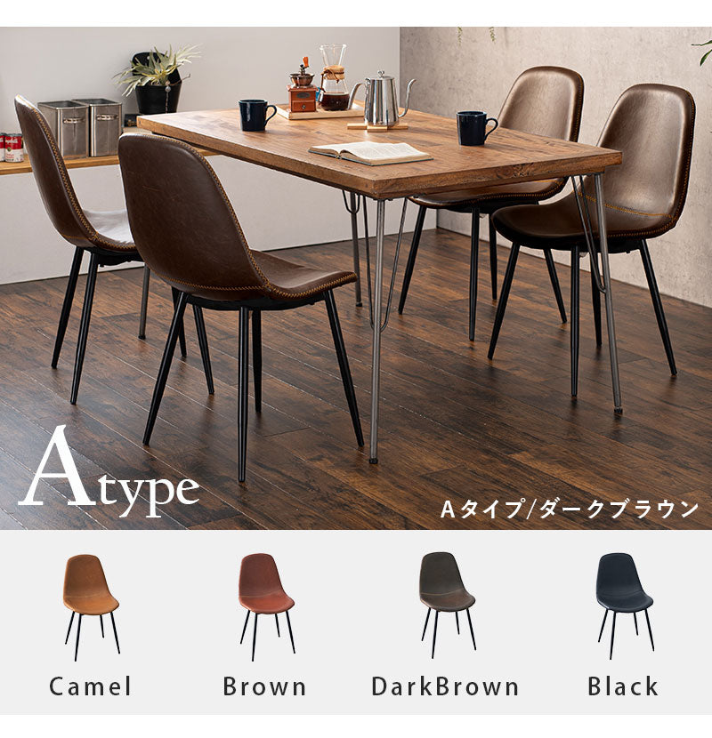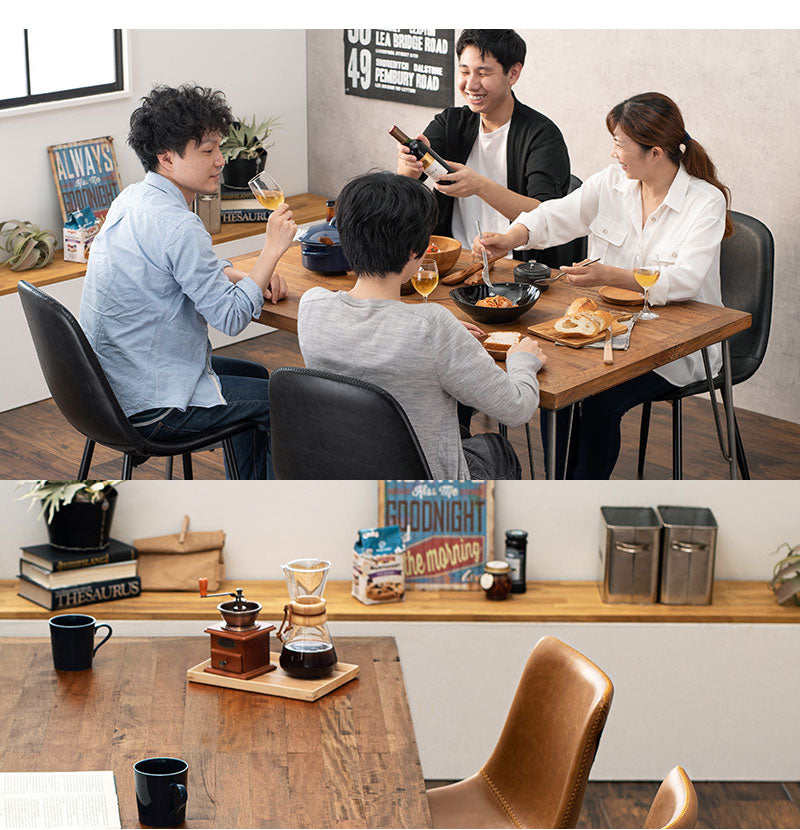チェアは本革をリアルに再現したヴィンテージ風の合成皮革。本革風の雰囲気を楽しむことができてお手入れも簡単。