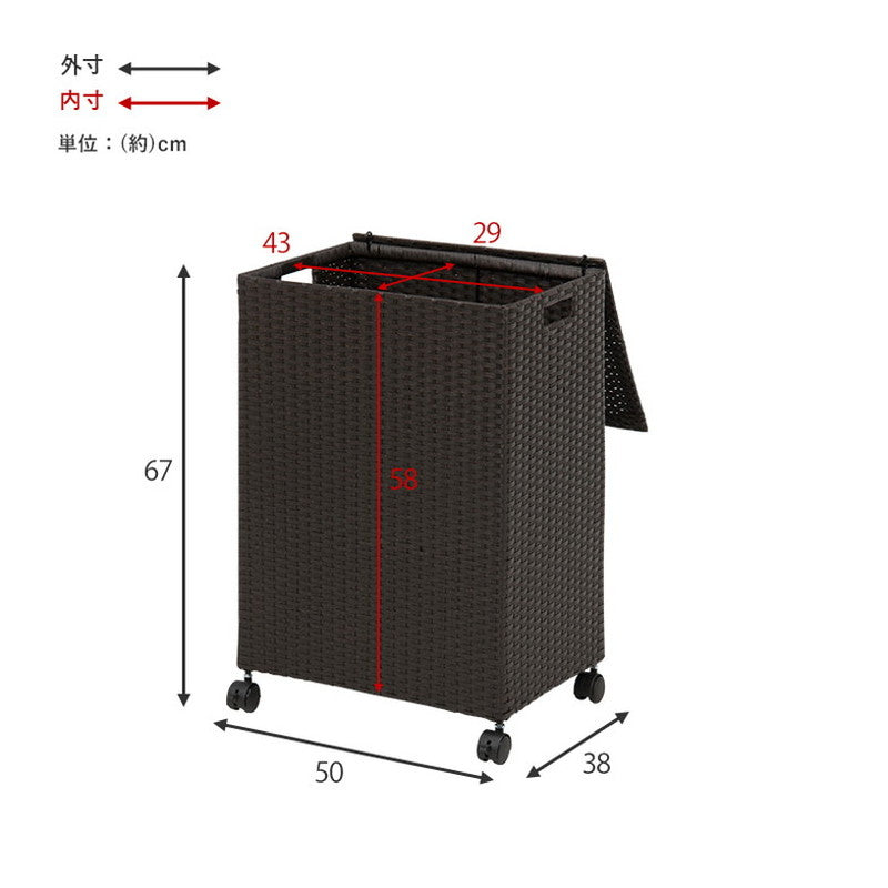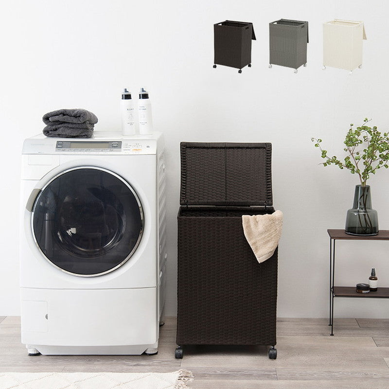 ランドリーボックス フタ付き 幅50cm ランドリーバスケット ラタン調 ランドリー収納 洗濯かご 収納ボックス おしゃれ シンプル 脱衣所 洗面所 キッチン リビング キャスター付き 縦型 大容量 防水(代引不可)