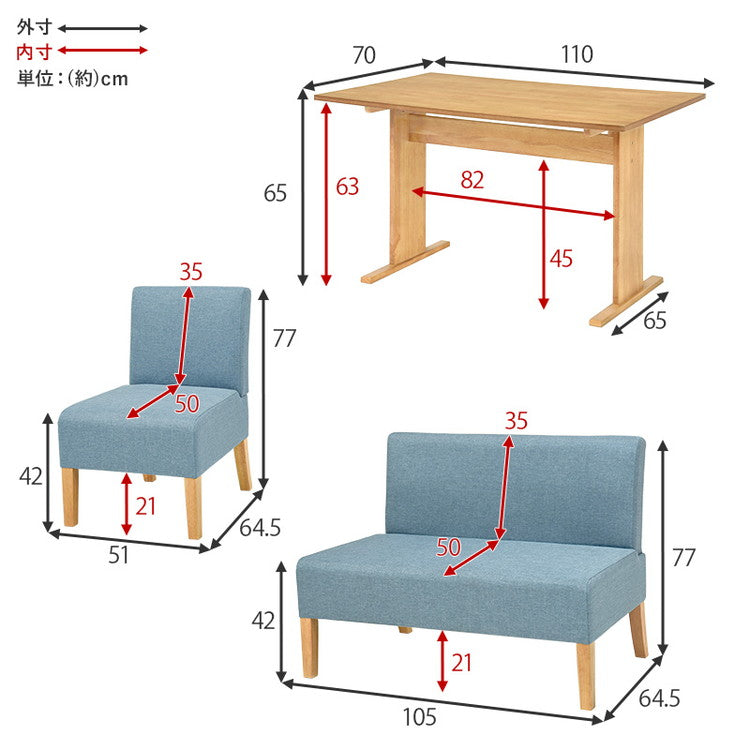 ゆったりロータイプ ダイニング4点セット テーブル+ソファ+チェア2脚 くつろぎソファダイニング ダイニングテーブル ダイニングソファ ダイニングセット ダイニング 4点セット イス 椅子 チェア(代引不可)