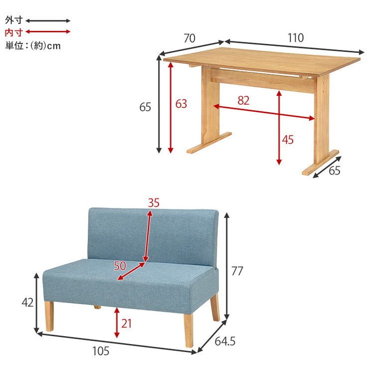 ソファ(2P):(約)幅105×奥行64.5×高さ77×座面高42cm