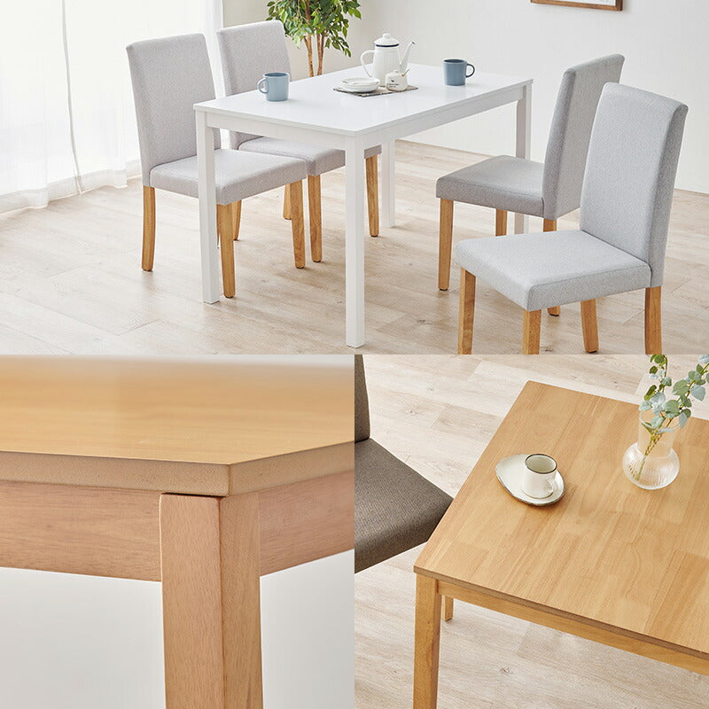 ゆったりくつろげるハイバック仕様のダイニング5点セット。さらっとした肌触りのベーシック生地を使用。