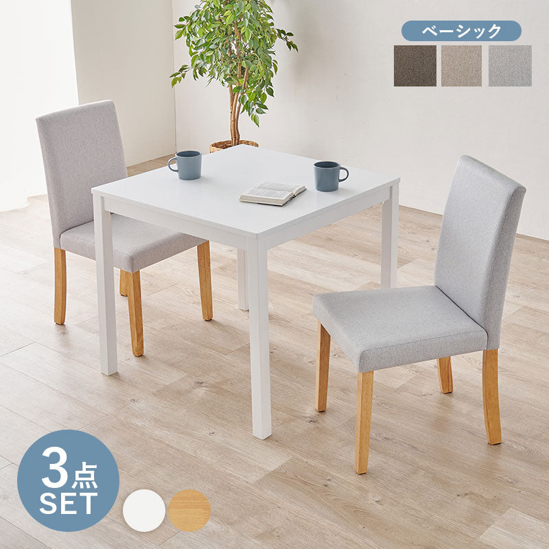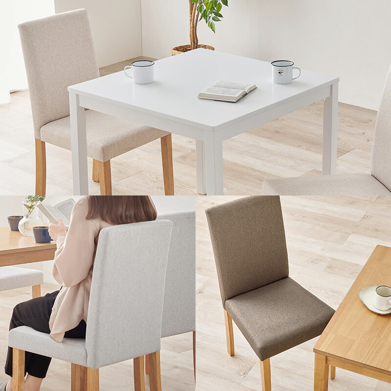 ゆったりくつろげるハイバック仕様のダイニング3点セット。さらっとした肌触りのベーシック生地を使用。
