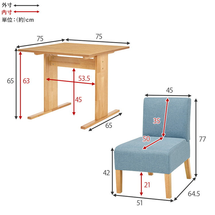 チェア(1P):(約)幅51×奥行64.5×高さ77×座面高42cm