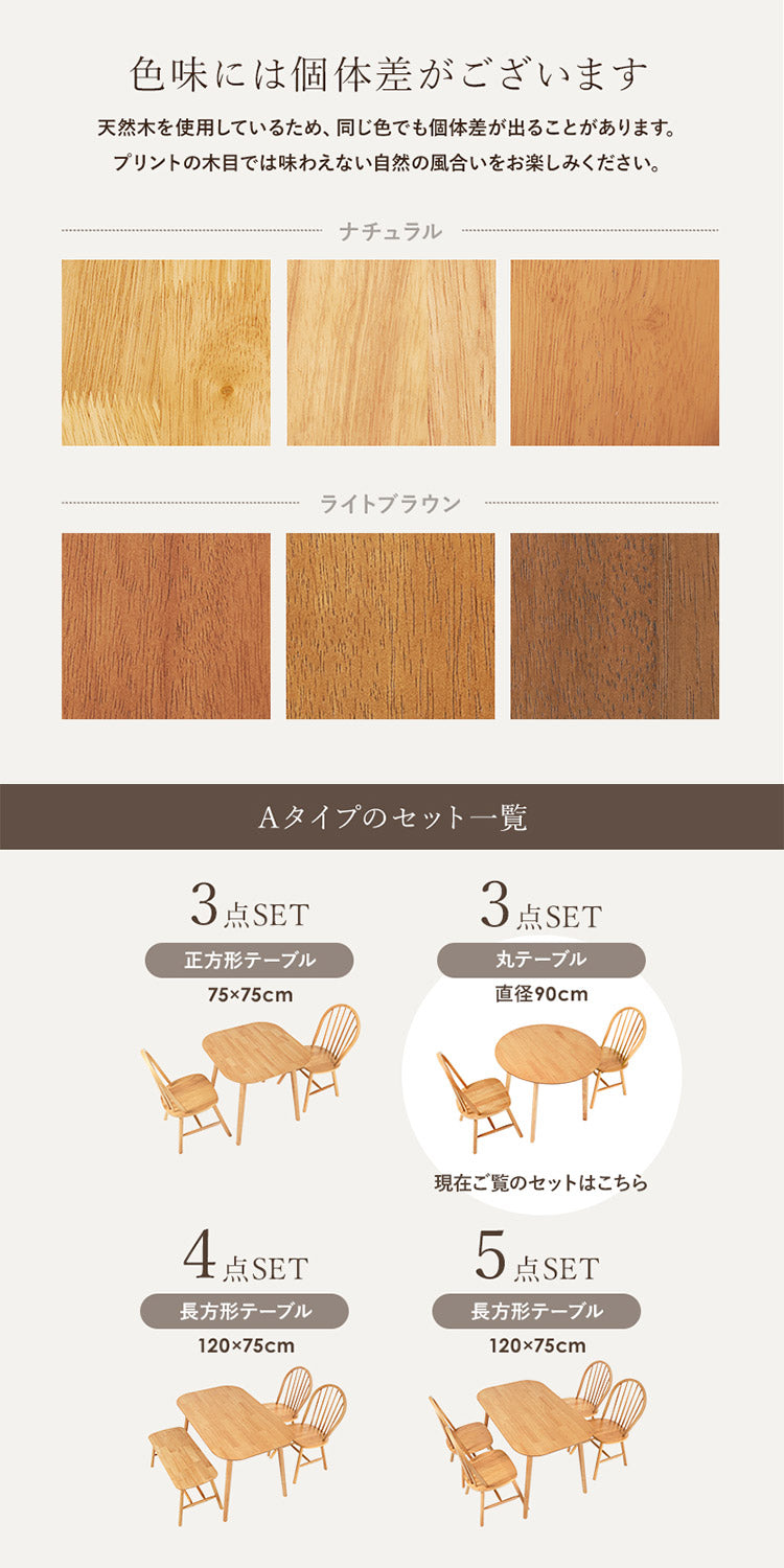 主材:天然木、天板:(ナチュラル、ライトブラウン)天然木化粧繊維板・(ホワイト)繊維板