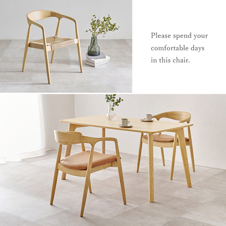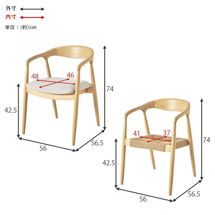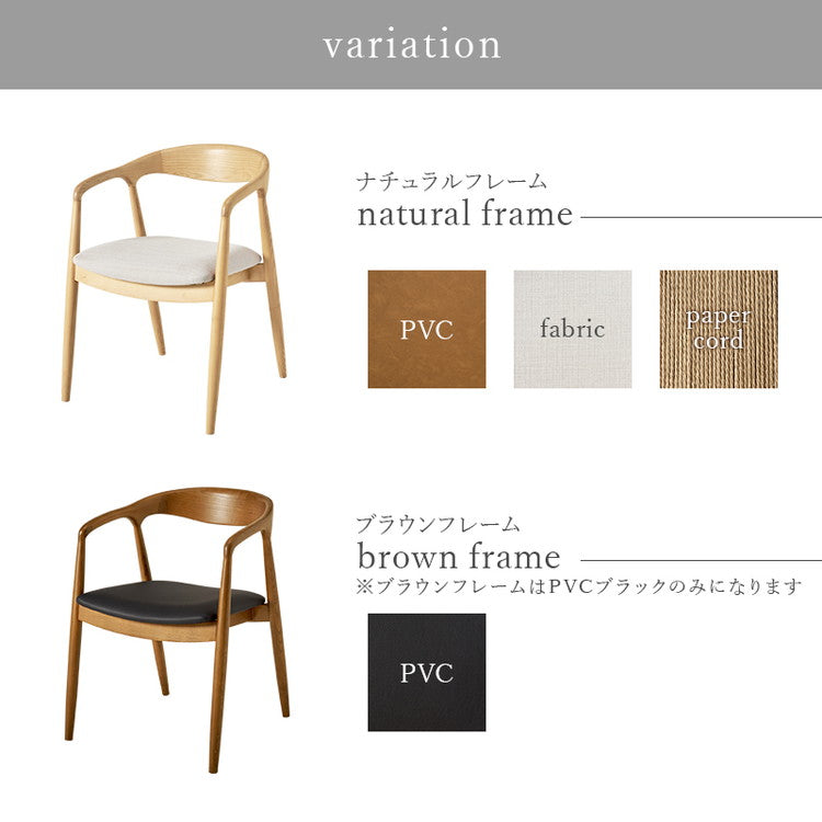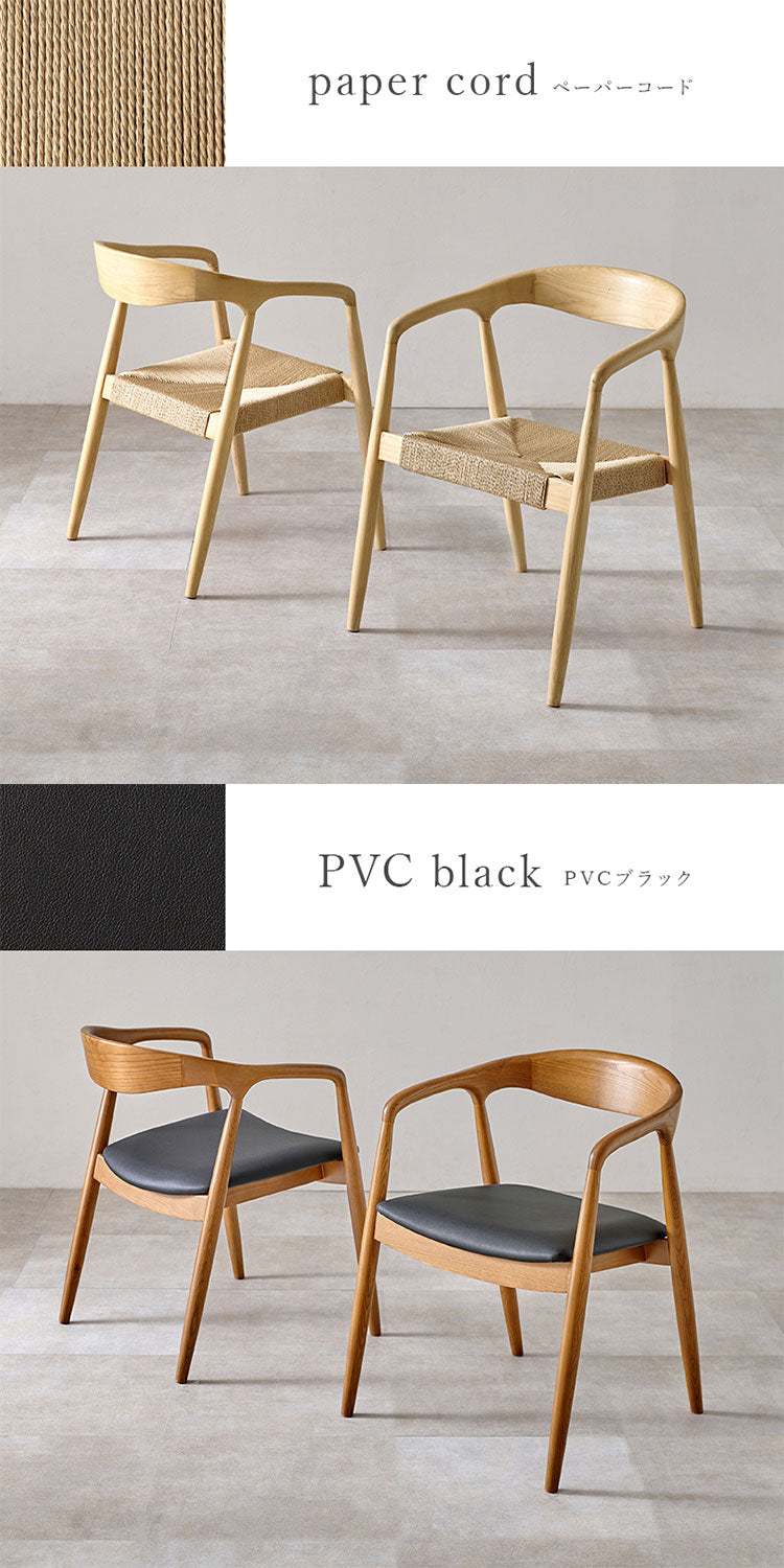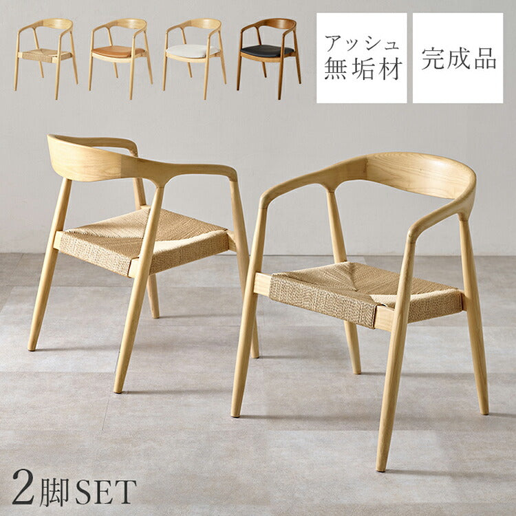 天然木 ダイニングチェア 2脚セット アッシュ無垢材 曲木 肘付き 背もたれ ペーパーコード ファブリック PVC 北欧 デザインチェア 椅子 イス VC-7000(代引不可)