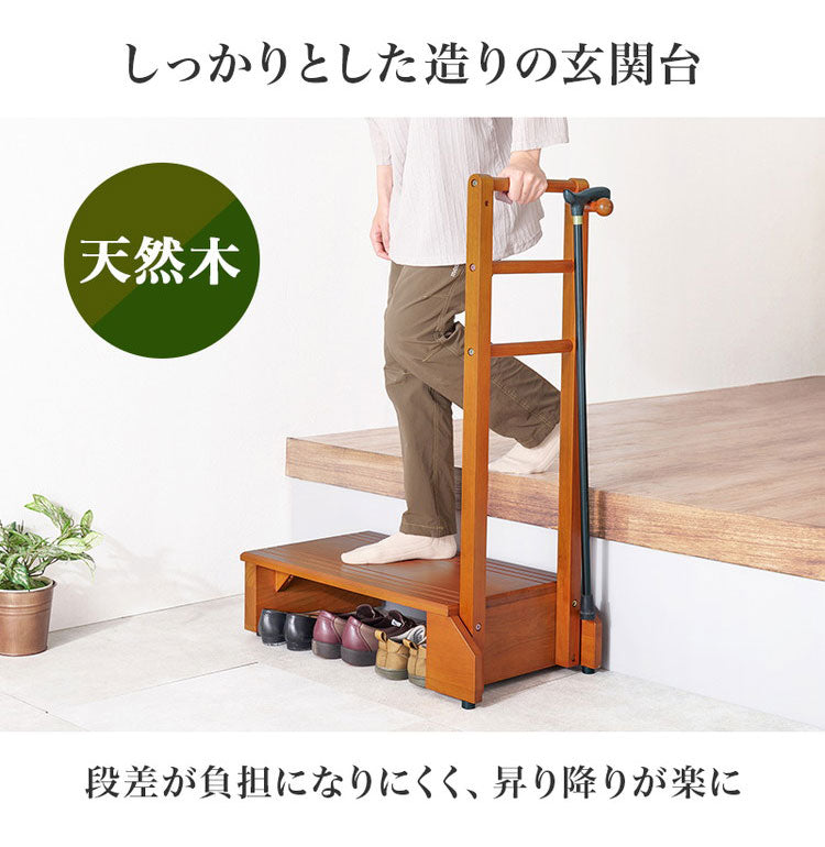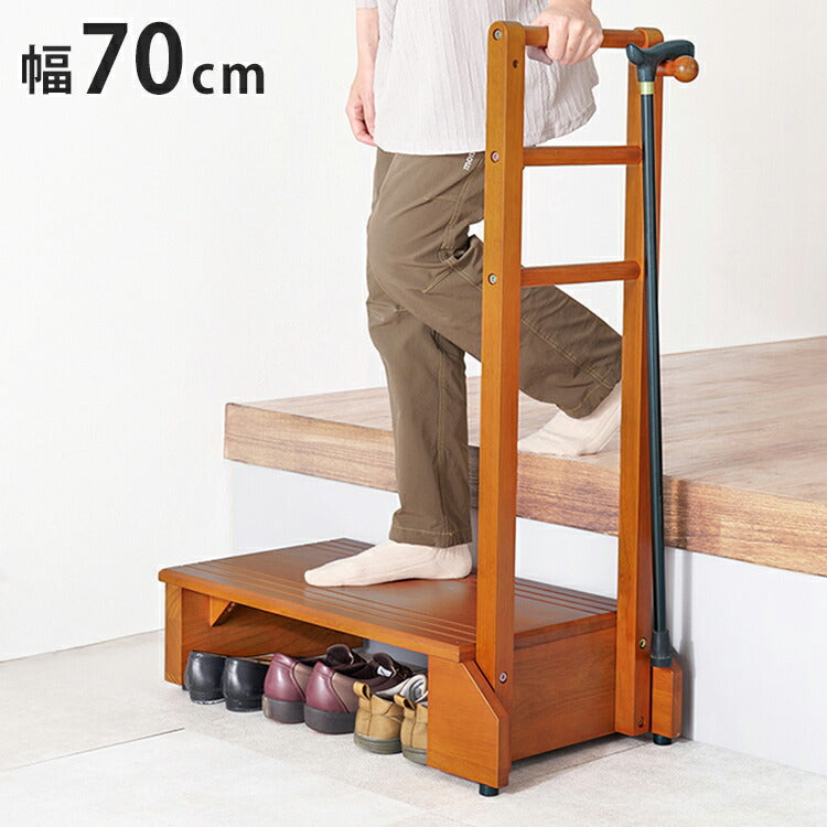 耐荷重100kg 手すり付き玄関踏み台 片側手すり 幅70cm 天然木 踏み台 頑丈 踏み台 ステップ 玄関 台 玄関踏み台 玄関ステップ 段差 昇降 玄関収納 つかまり 手すり(代引不可)