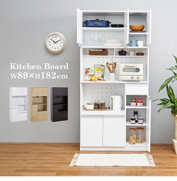 食器棚 幅89 高さ182 大容量 ハイタイプキッチンボード スライド棚 引出し 扉収納 キッチン収納 キャビネット 食器棚 レンジ台 レンジボード おしゃれ(代引不可)