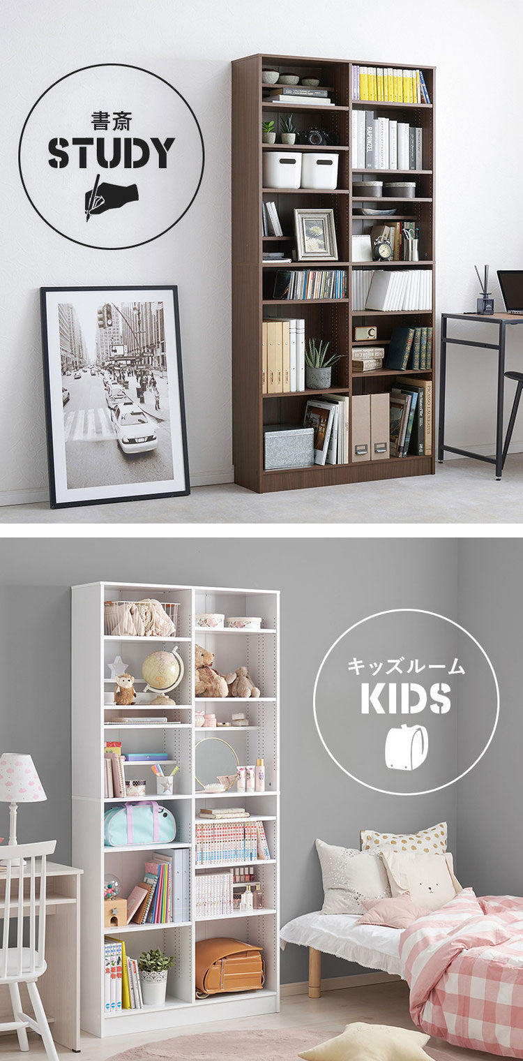 前後2列別々に棚板高さが変えられ、大容量収納できるマンガ好きの為の本棚