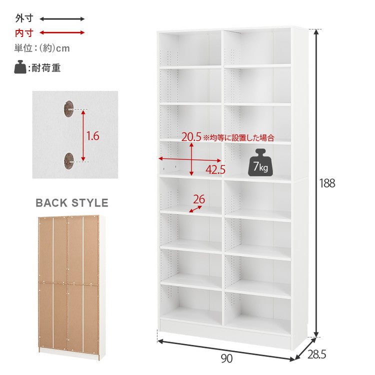 マンガ好きのための本棚 段違い 大容量 1.6cmピッチ 可動棚 幅90cm コミックラック 漫画 マンガ コミック 収納 ディスプレイ シェルフ 転倒防止(代引不可)