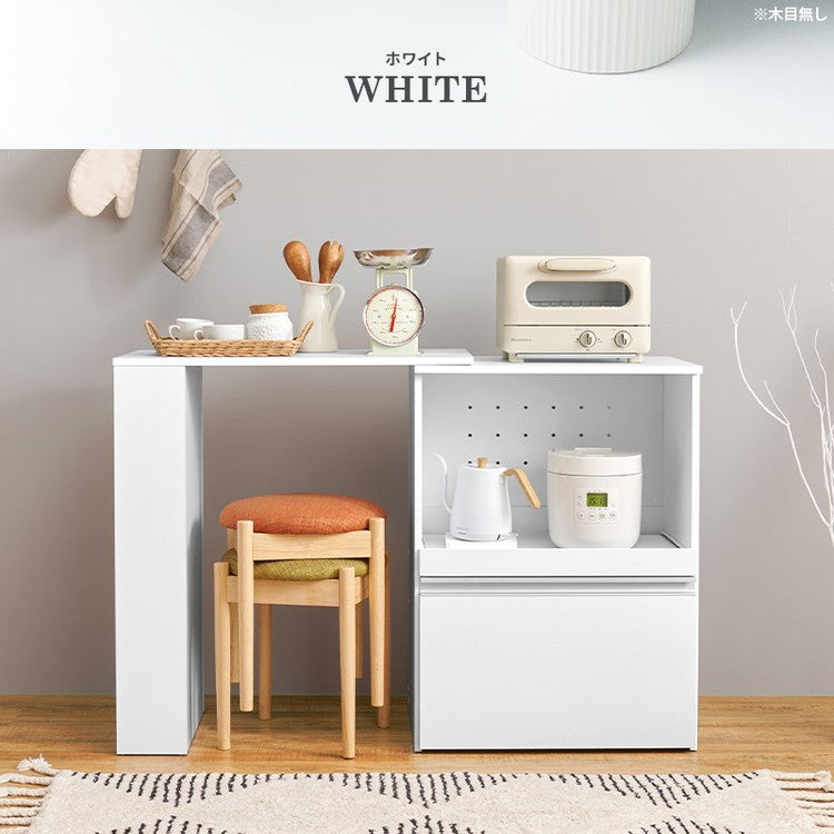 伸縮キッチンカウンター 2点セット 幅75~125 収納庫タイプ 2口コンセント 深型ドロワー スライド棚 キッチン収納 キャビネット 食器棚 レンジ台 レンジボード ごみ箱上ラック ゴミ箱上ラック おしゃれ(代引不可)
