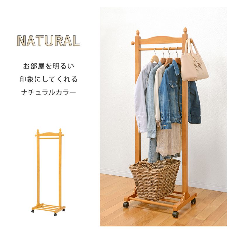 ハンガーラック キャスター付き 木製 ラバーウッド 幅60cm 奥行40cm 高さ154cm 棚付き コートハンガー VR-7237 萩原 移動(代引不可)