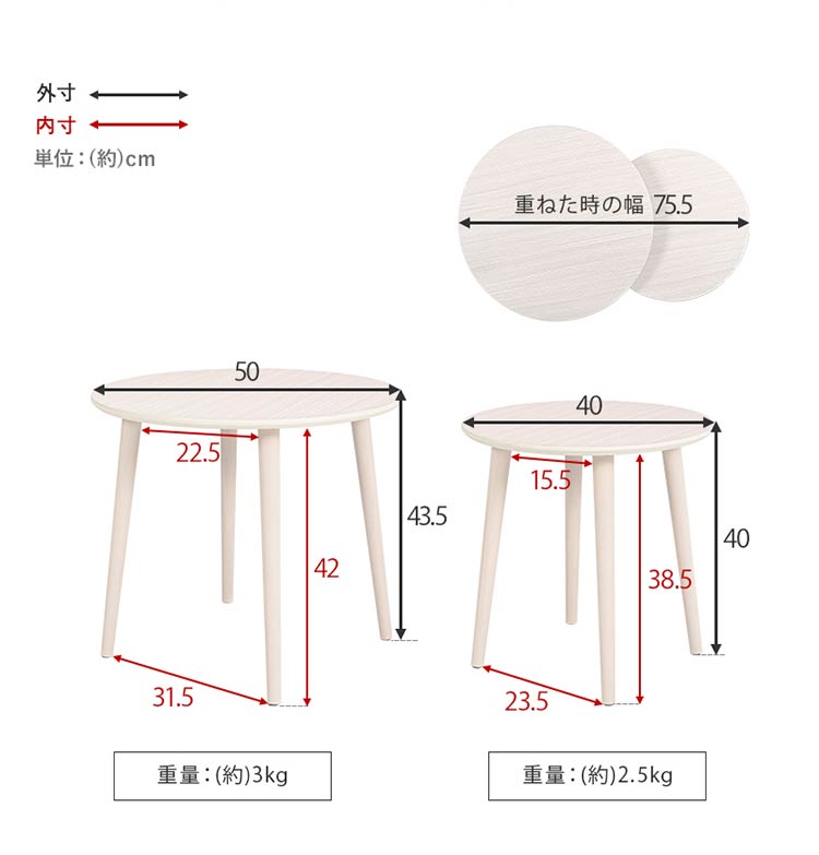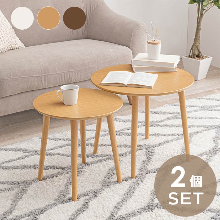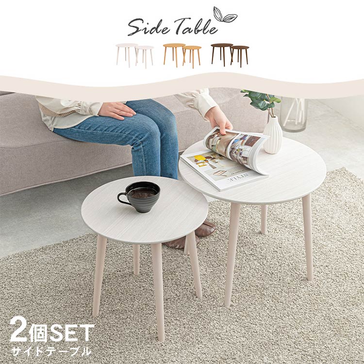 サイドテーブル 2個セット 円形 ネストテーブル 直径50/40 おしゃれ 丸 コンパクト ナイトテーブル 北欧 リビングテーブル ディスプレイ 玄関 白 韓国インテリア(代引不可)