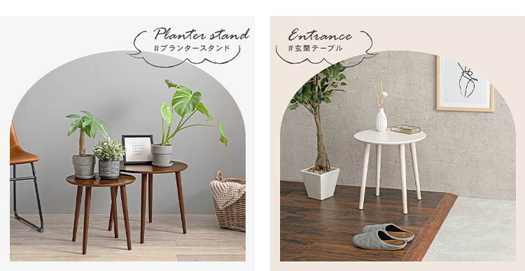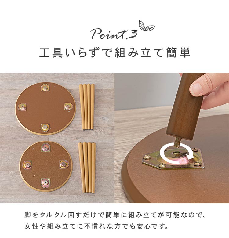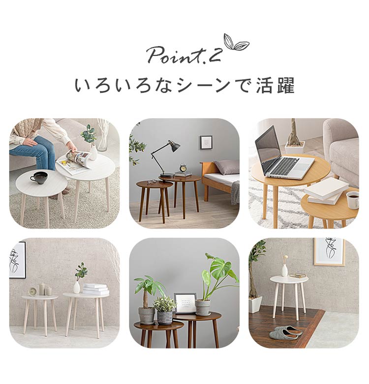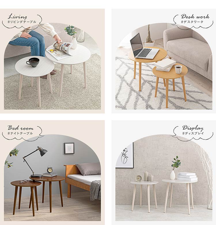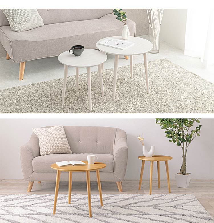 工具いらずで組立簡単。丸型が可愛いサイドテーブル大小2個セット。