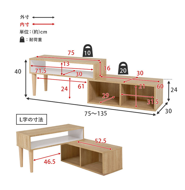 伸縮式 テレビ台 幅75~幅135 スライドテレビ台 24~32型対応 テレビボード ローボード TV台 伸縮 コーナーテレビ台 L字 ディスプレイ ラック 棚 収納 シンプル 北欧 おしゃれ(代引不可)